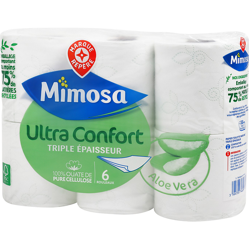 PAPIER TOILETTE PARFUME TRIPE EPAISSEUR MIMOSA 100% PURE OUATE DE CELLULOSE.