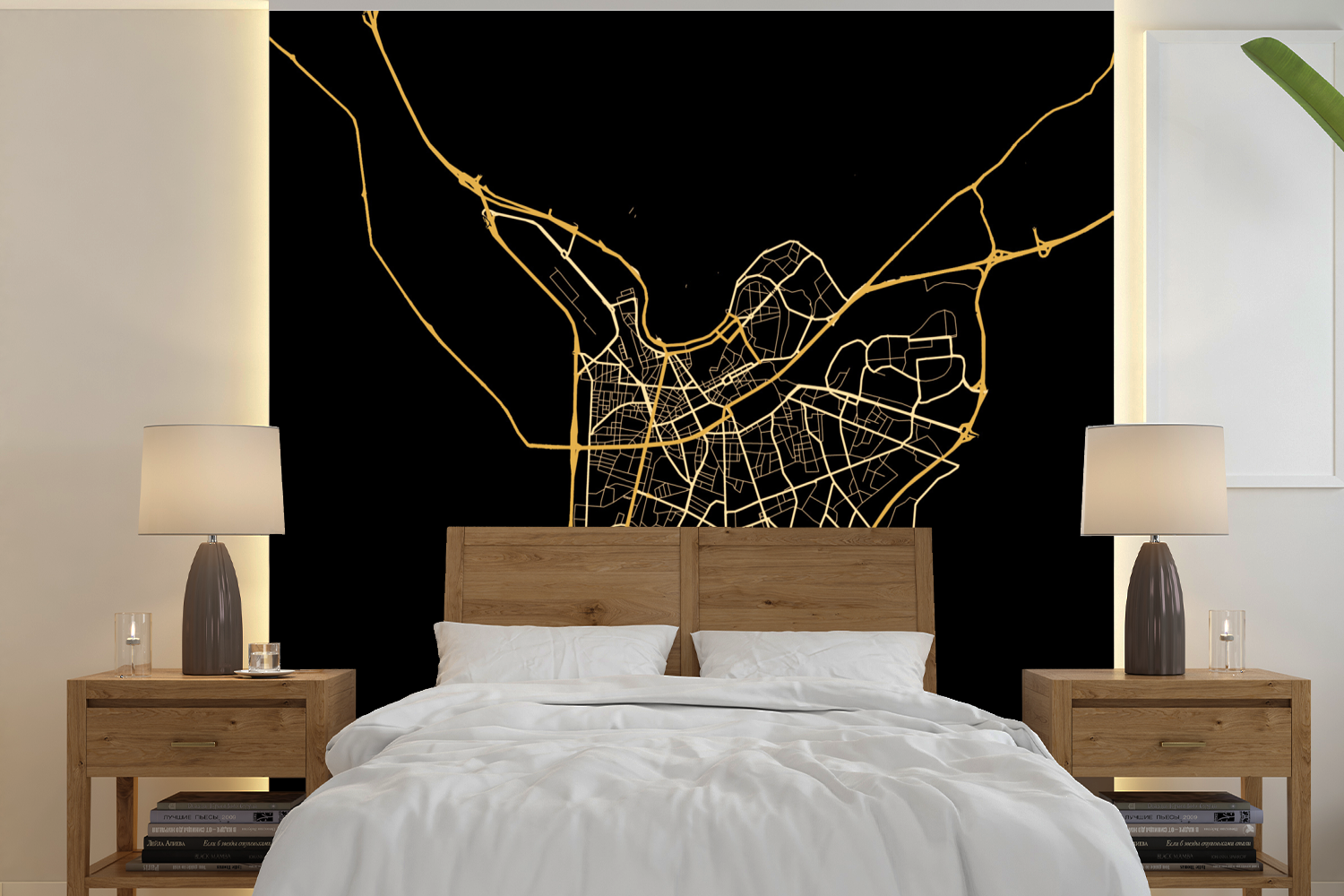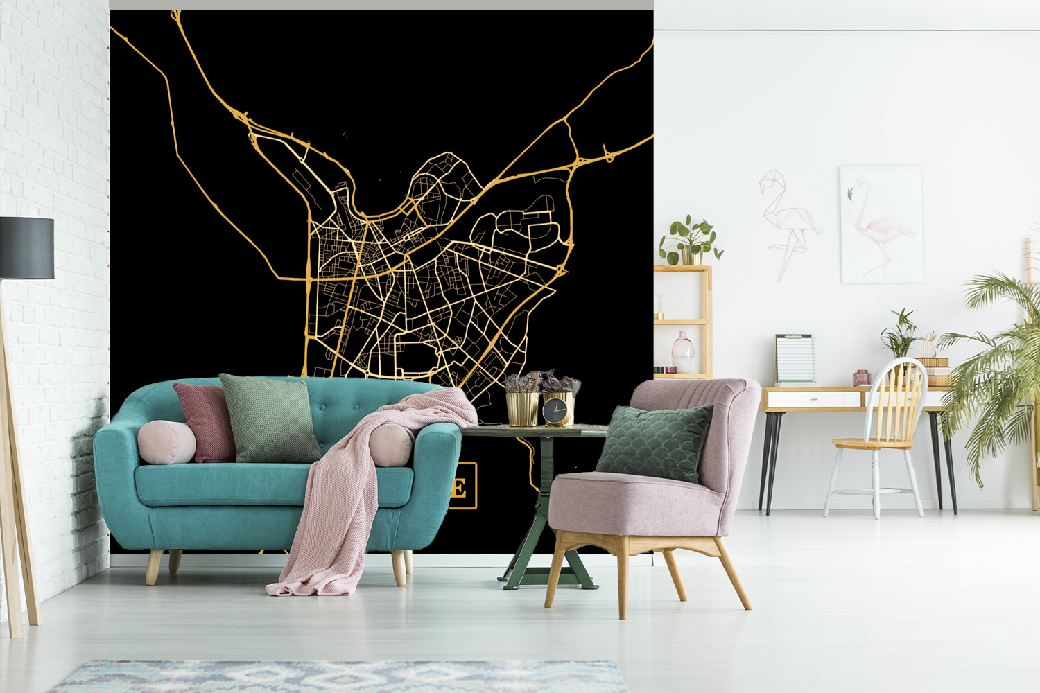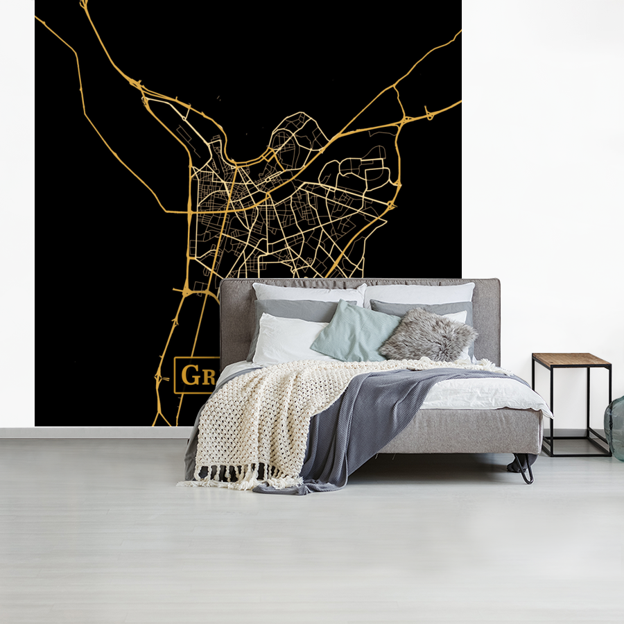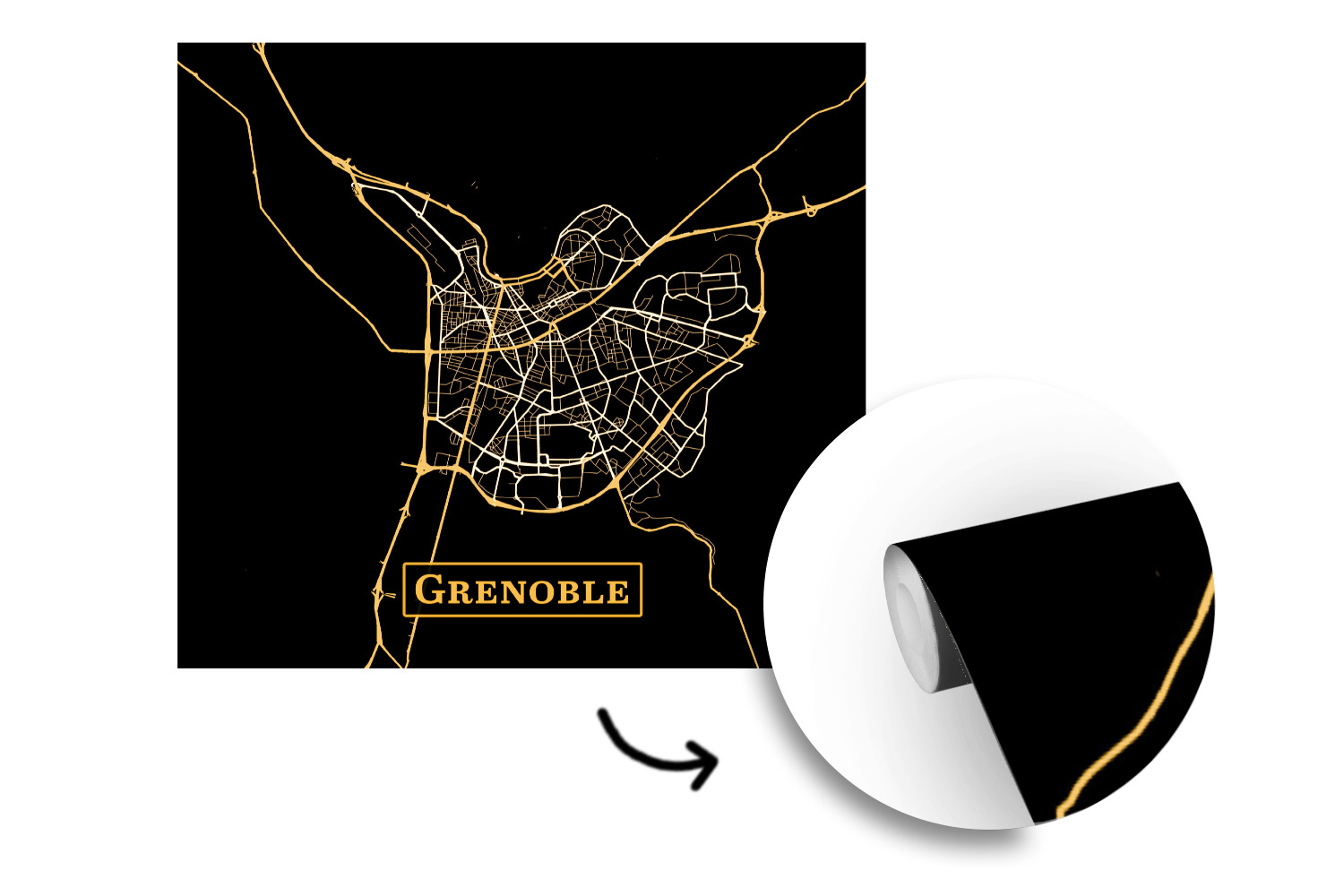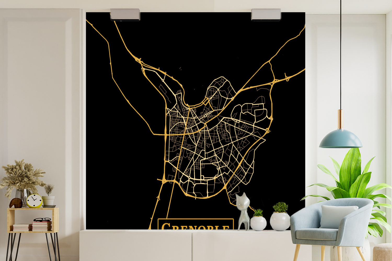 Libellé Papier peint Carte - Grenoble - Noir - Or Papier peint photo 280x280 cm Papier peint imprimé