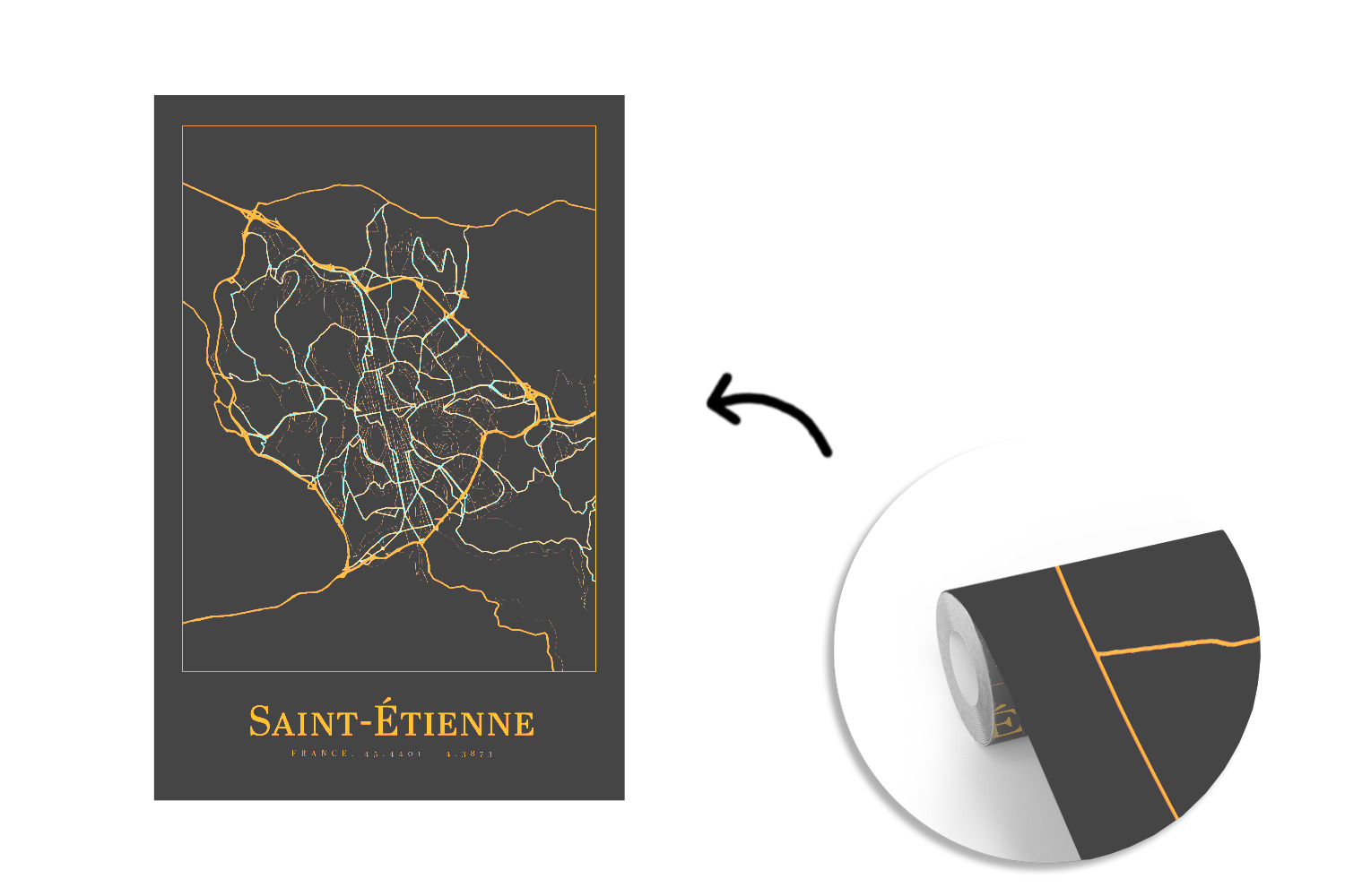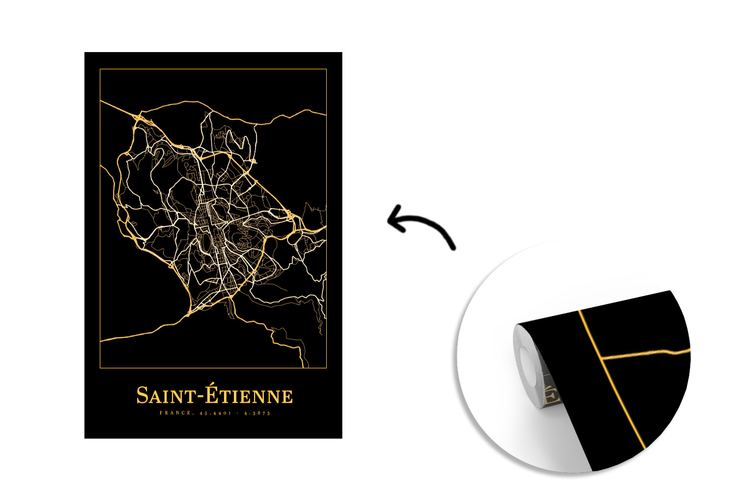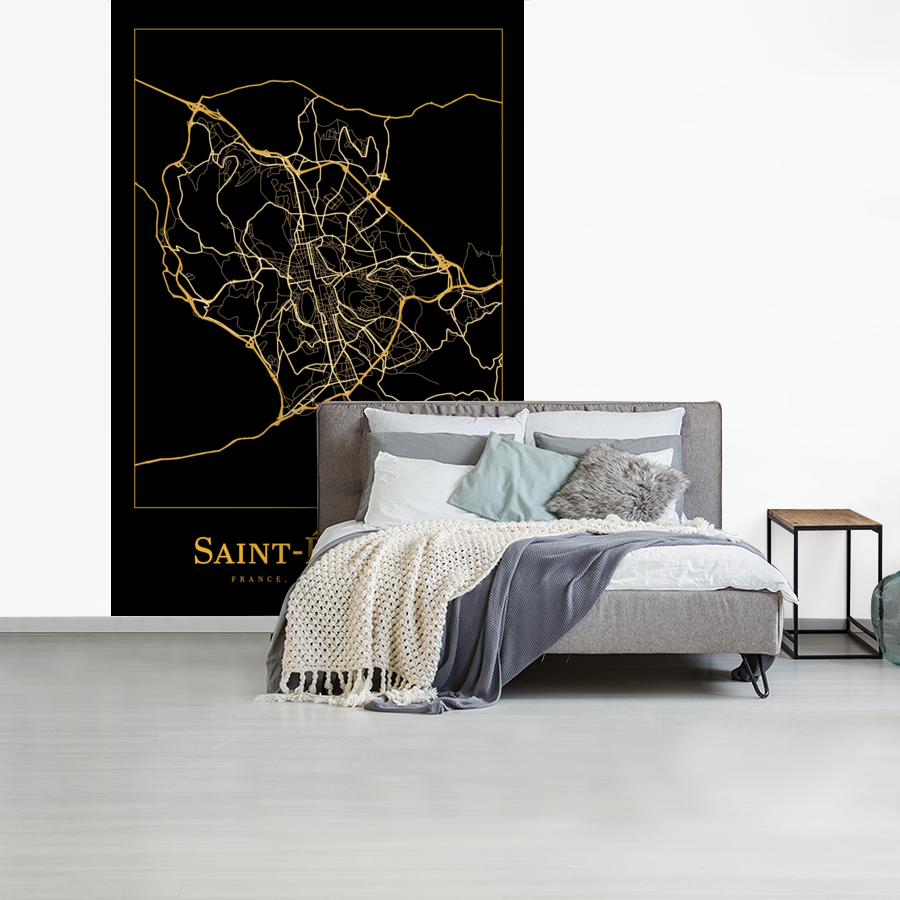 Papier peint Carte - Saint-Etienne - Or - Noir Papier peint photo 170x260 cm Papier peint imprimé