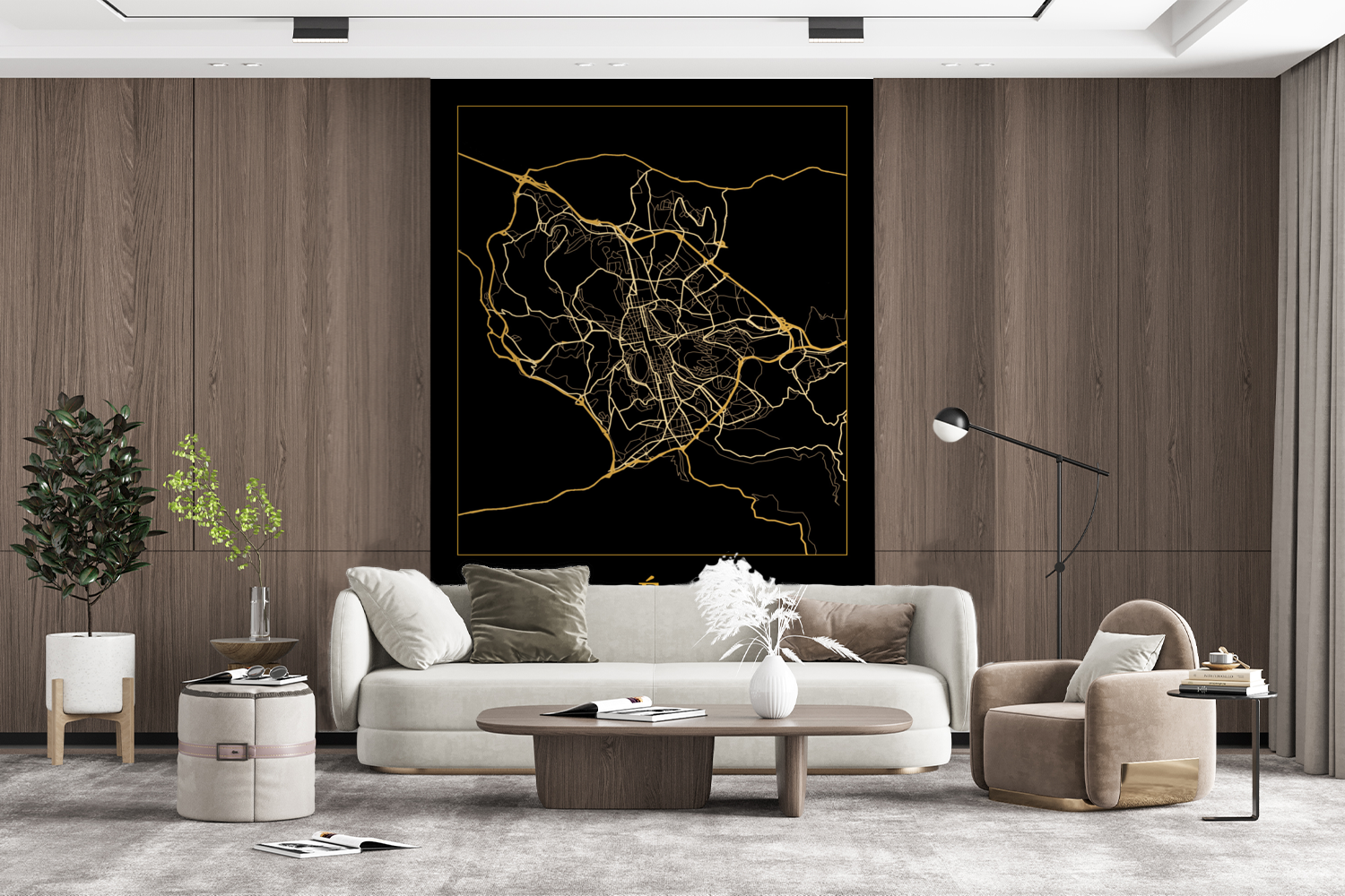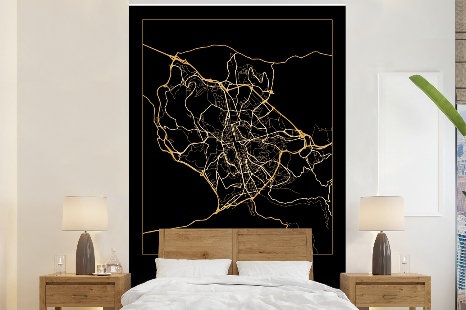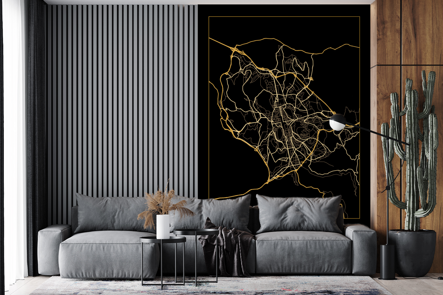 Papier peint Carte - Saint-Etienne - Or - Noir Papier peint photo 170x260 cm Papier peint imprimé