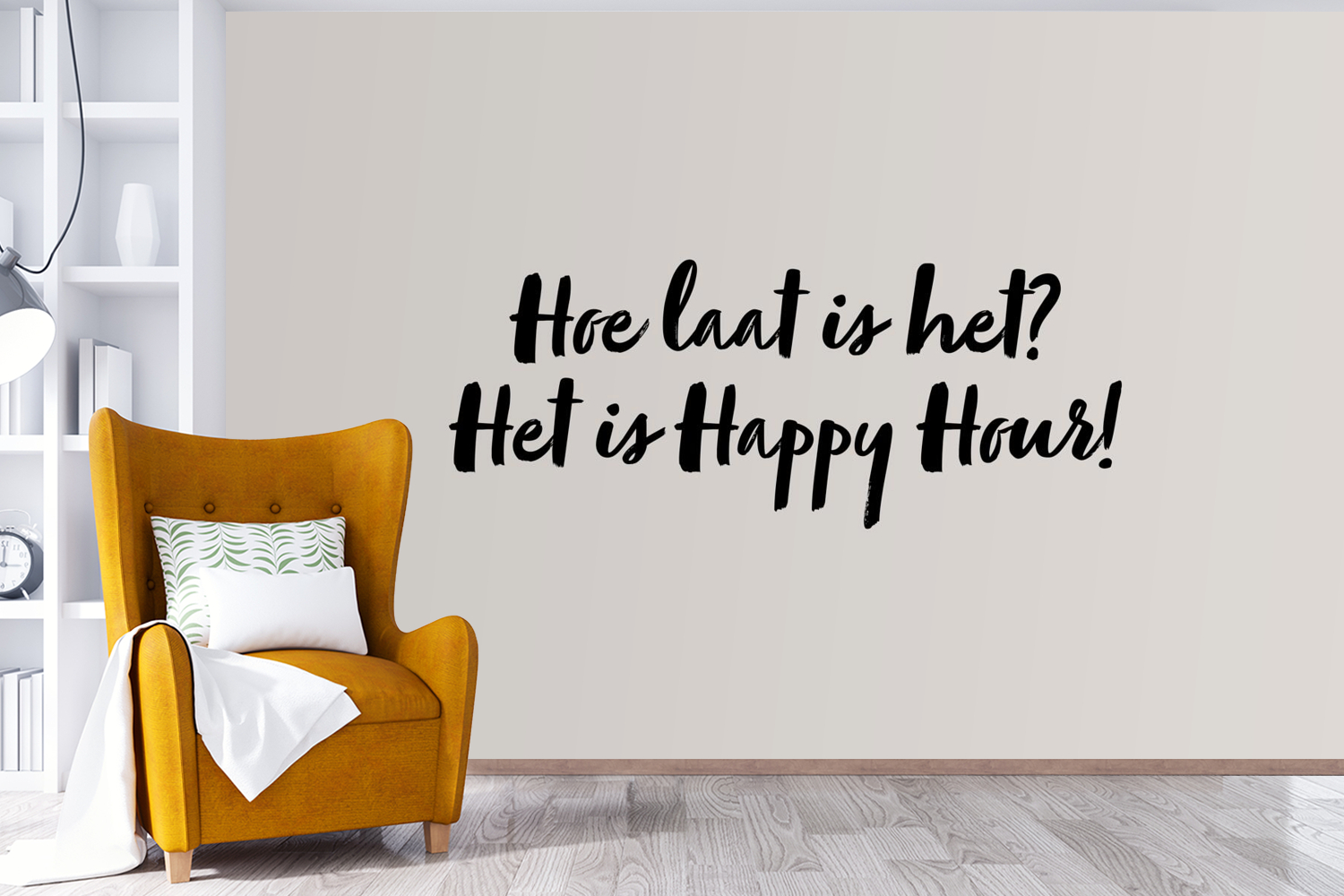 Passer le carrousel d'imagesLa citation What time is it ? It's happy hour ! sur un fond taupe.