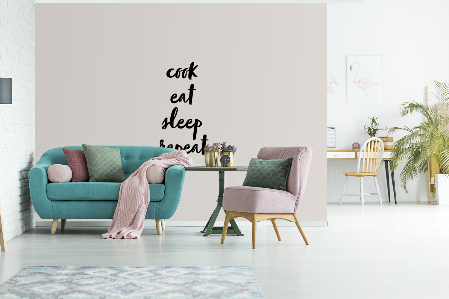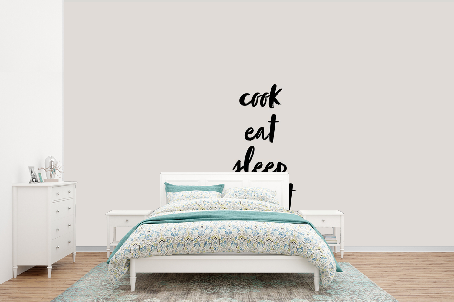 Papier peint Citations - Alimentation - Proverbes - Cuisiner manger dormir répéter - Cuisine Papier peint