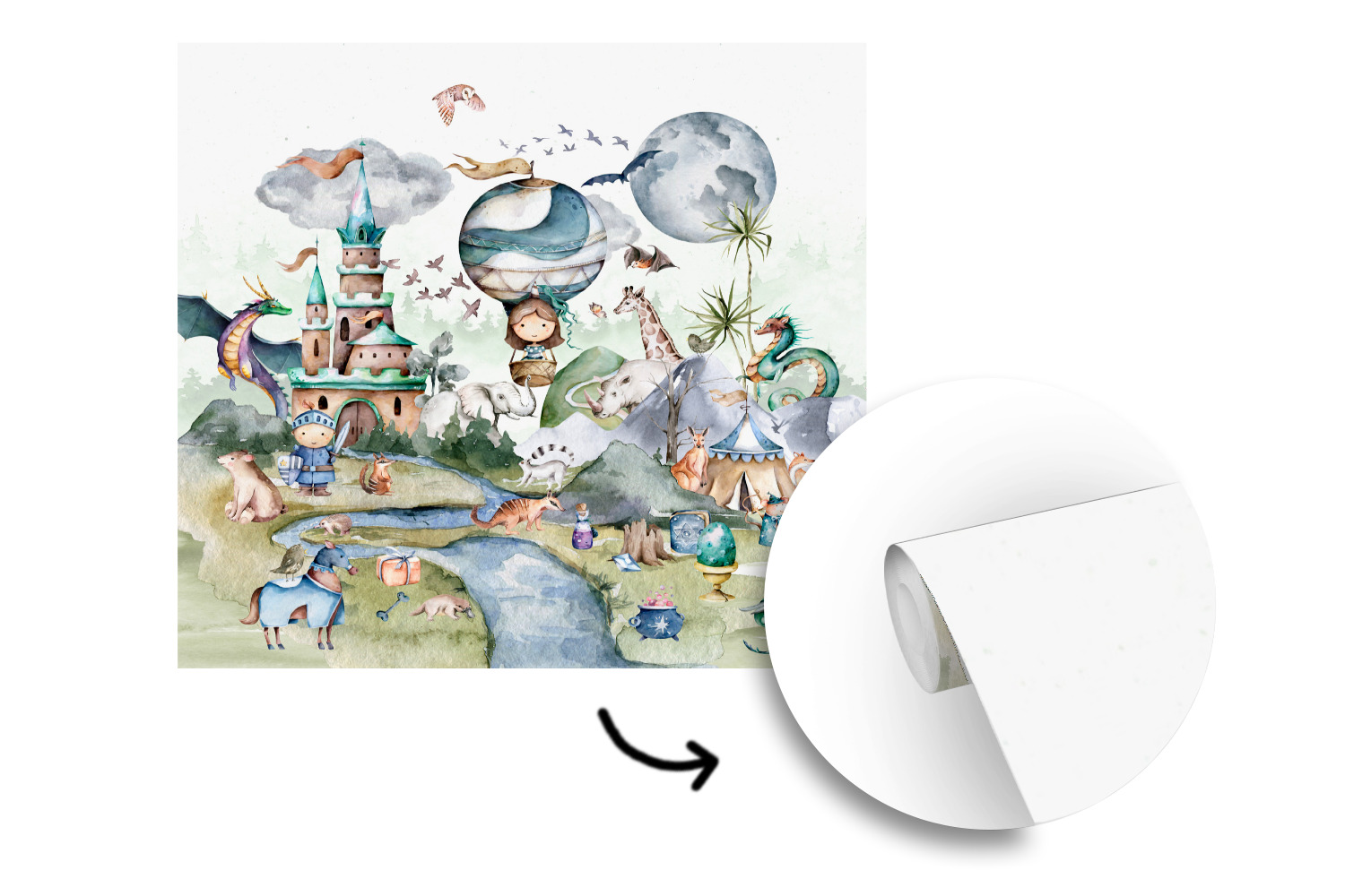 Papier peint Dragon - Enfants - Ballon Papier peint photo 300x300 cm Papier peint imprimé