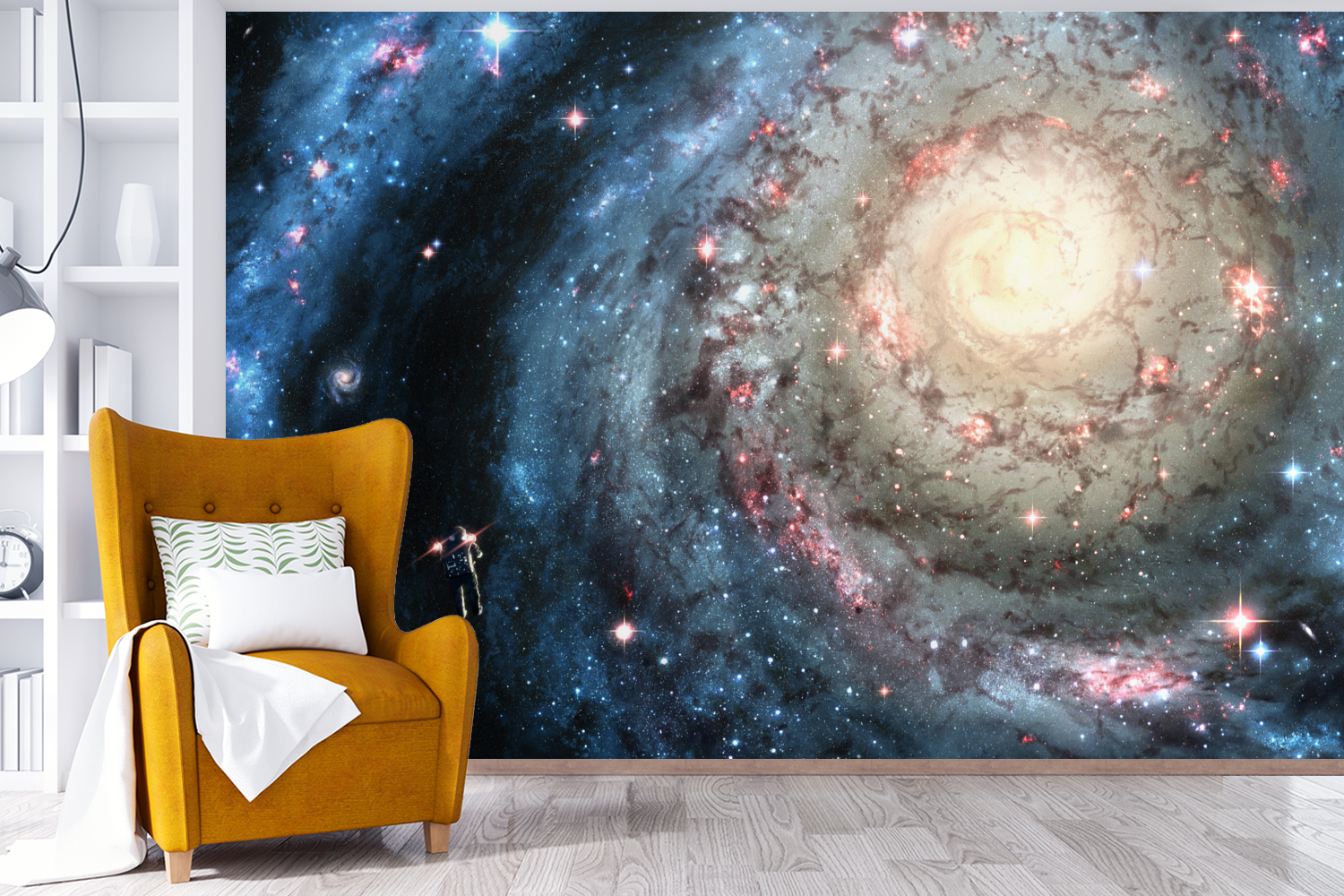 Passer le carrousel d'imagesUne belle illustration de la galaxie la Voie lactée. L'illustration est colorée grâce aux couleurs bleu, jaune et rouge.