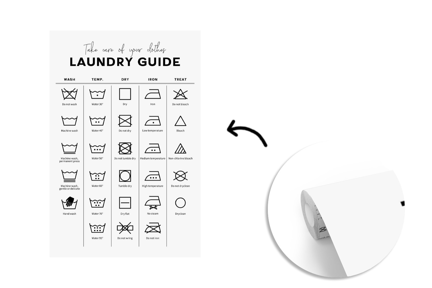 Papier peint Instructions de lavage - Lave-linge - Symboles Papier peint photo 170x260 cm Papier peint im