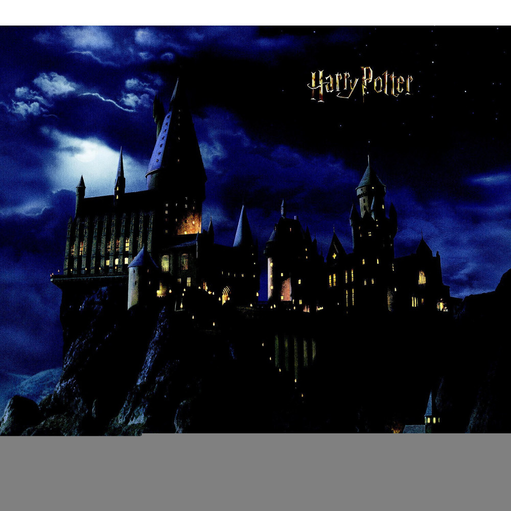 - Description : le château de Poudlard est illuminé le soir. On distingue la lumière de la lune. Le logo Harry Potter figure en haut à droite.