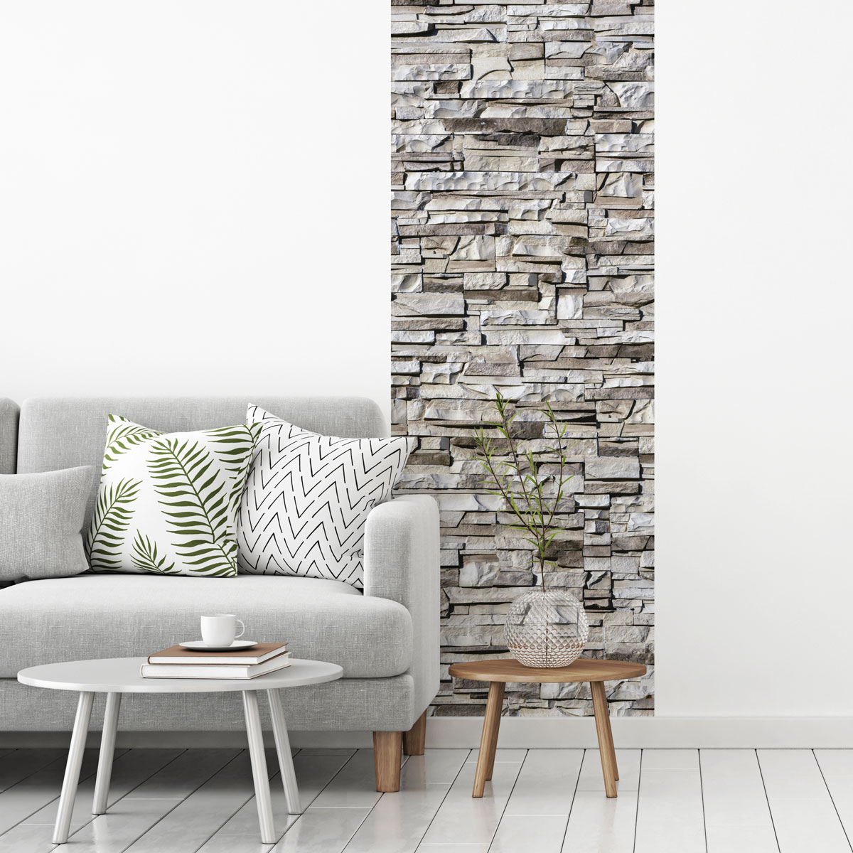 Papier peint panoramique préencollé pour votre déco ! Avec le papier peint intissé préencollé et ce Papier peint préencollé parement de pierres H300 x L60 cm H300 x L60 cm, vous pourrez enfin décorer l'intérieur de votre appartement ou maison à votre guise ! Application rapide à l'eau, sans colle et sans bulle d'air ! Description: Le papier peint est composé d'une bande en papier peint préencollé qui mesure H300 x L60 cm. Qualité supérieure: papier peint intissé épais et doux au toucher. Pose : -Pulvériser de l'eau sur le dos du papier peint, puis le poser sur le mur -Repositionnable dans les premières minutes -Laisser sécher Caractéristiques techniques : -Marque: papier peint Aquapaper® - made in France - Epaisseur: 290µm (épais) - grammage 175g/m² - permet une pose facile et sans bulle d'air. Résiste à la déchirure - Préencollé: pas besoin de colle. Vaporiser le lé et le mur avec de l'eau puis poser sur le mur. Repositionnable pendant la pose -Matériau: intissé à base de fibres cellulosiques et polyester liées par un acrylique. Le papier peint a une surface un peu granulée et douce au toucher - non lisse -Rendu: satiné -Lessivable: oui -Résistant au grattage: oui -Eco friendly: sans PVC et sans solvant -Impression: rendu haute définition avec encre Latex à base d'eau, sans solvant -Raccords: bord-à-bord -Ignifugé: résistant au feu -Certifications: répond aux normes européennes - Euroclasse C-s1, d0 -Surface d'application: placoplâtre, gyproc, fibre de verre, bois, métal, béton peint, mur peint, et tout autre type de surface non poreuse. Ne convient pas au béton brut, ni aux surfaces très poreuses Une pose simple et rapide: on pulvérise de l'eau, on applique et c'est fini! Où coller cet autocollant déco ? Plus besoin d’être un bricoleur professionnel pour embellir les murs de sa maison ou de son appartement à l'aide de la tapisserie moderne. Cette tapisserie murale est parfaite pour sublimer toutes les pièces de votre intérieur. Des visuels de haute qualité grâce à l’impression numérique digitale haute définition. Facile d’entretien, le papier peint préencollé se nettoie à l’éponge à l’eau claire.
