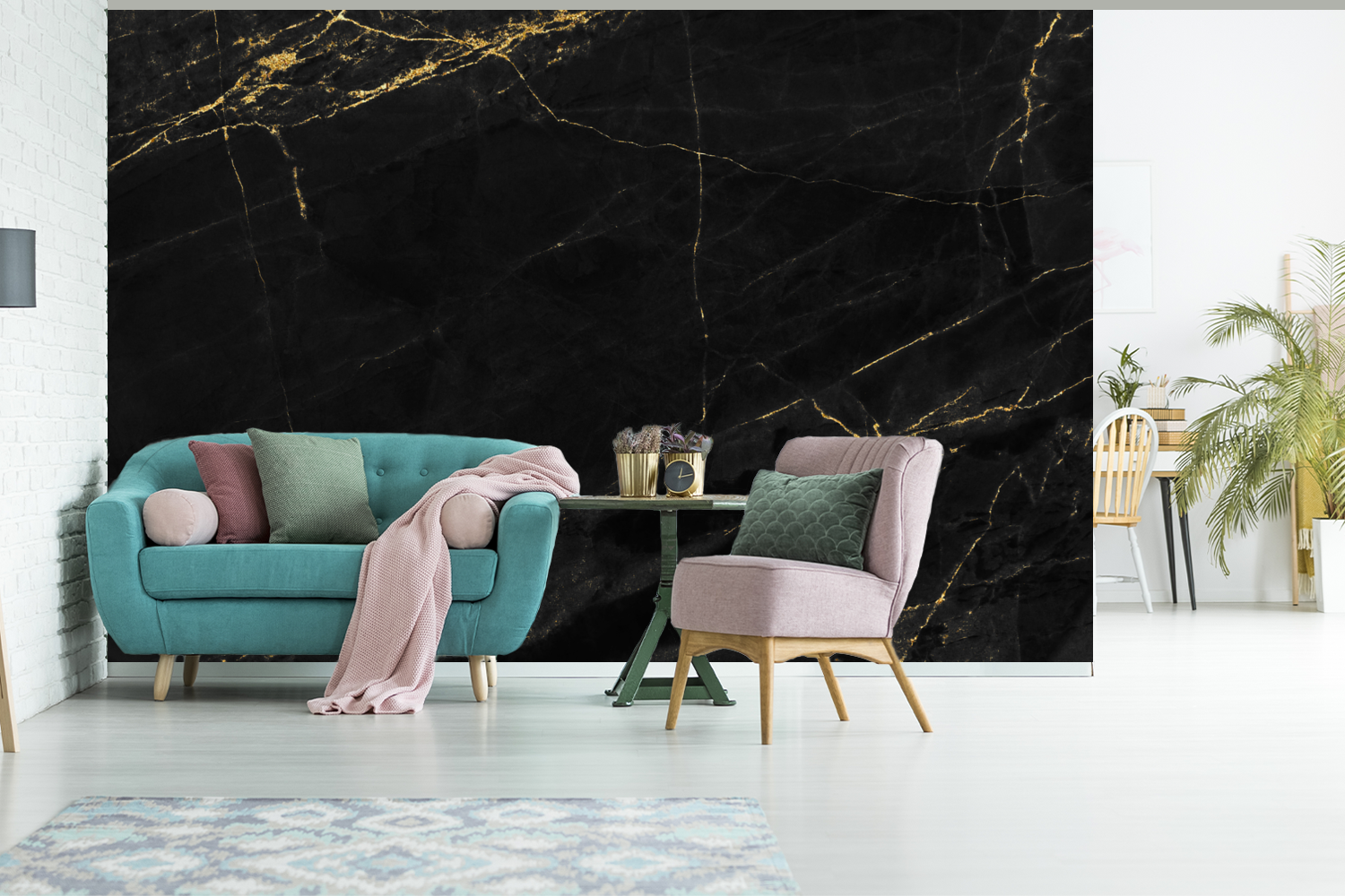 Papier peint Marbre - Noir - Or - Chic Papier peint photo 330x220 cm Papier peint imprimé