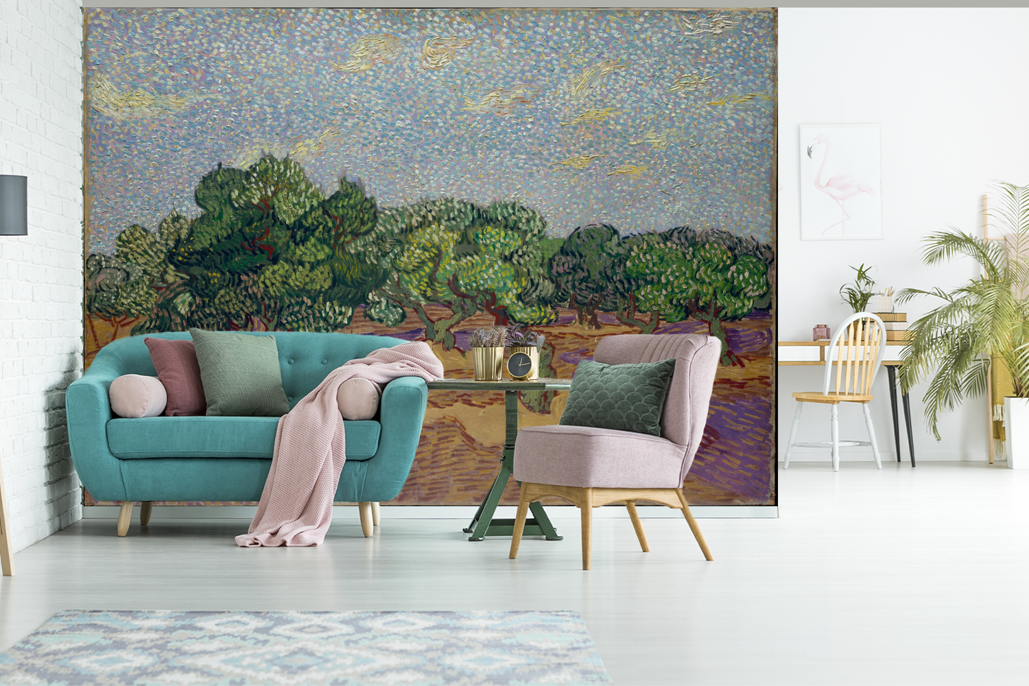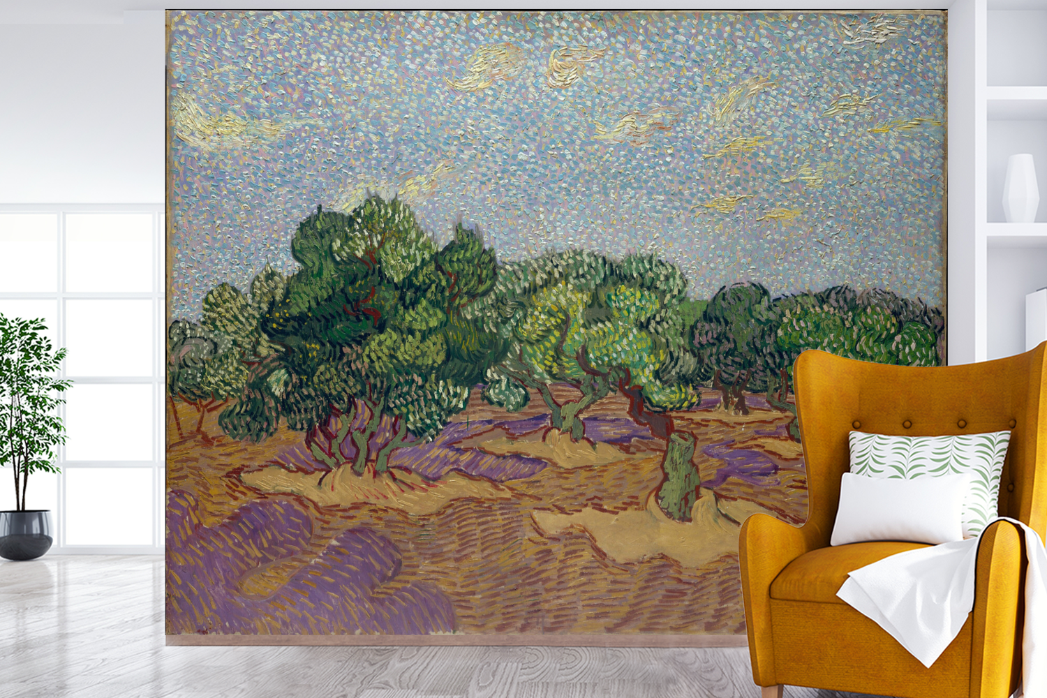 Papier peint Oliveraie avec un ciel bleu clair - Vincent van Gogh Papier peint photo 375x300 cm Papier pe