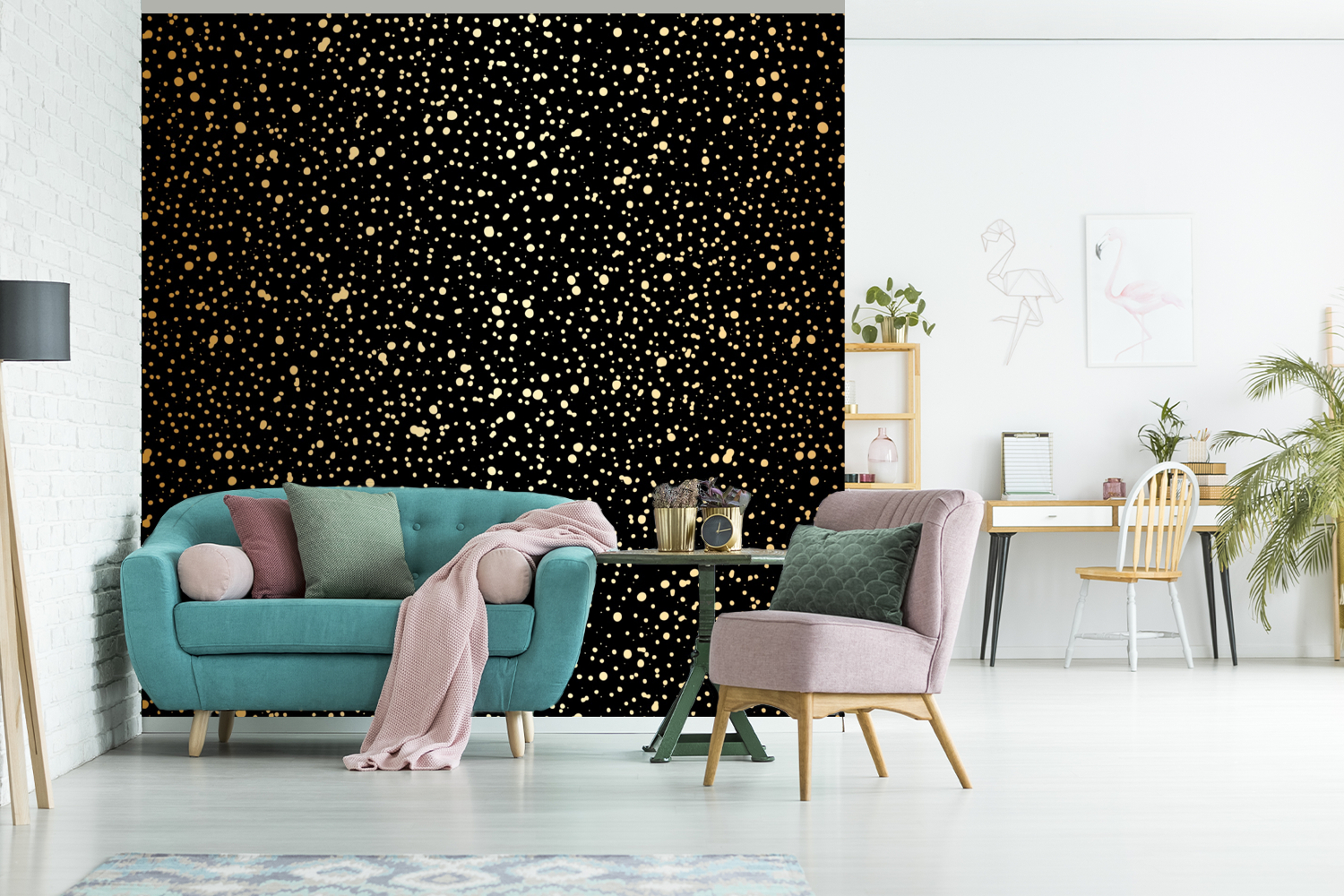Papier peint Or - Noir - Pois - Motifs Papier peint photo 280x280 cm Papier peint imprimé