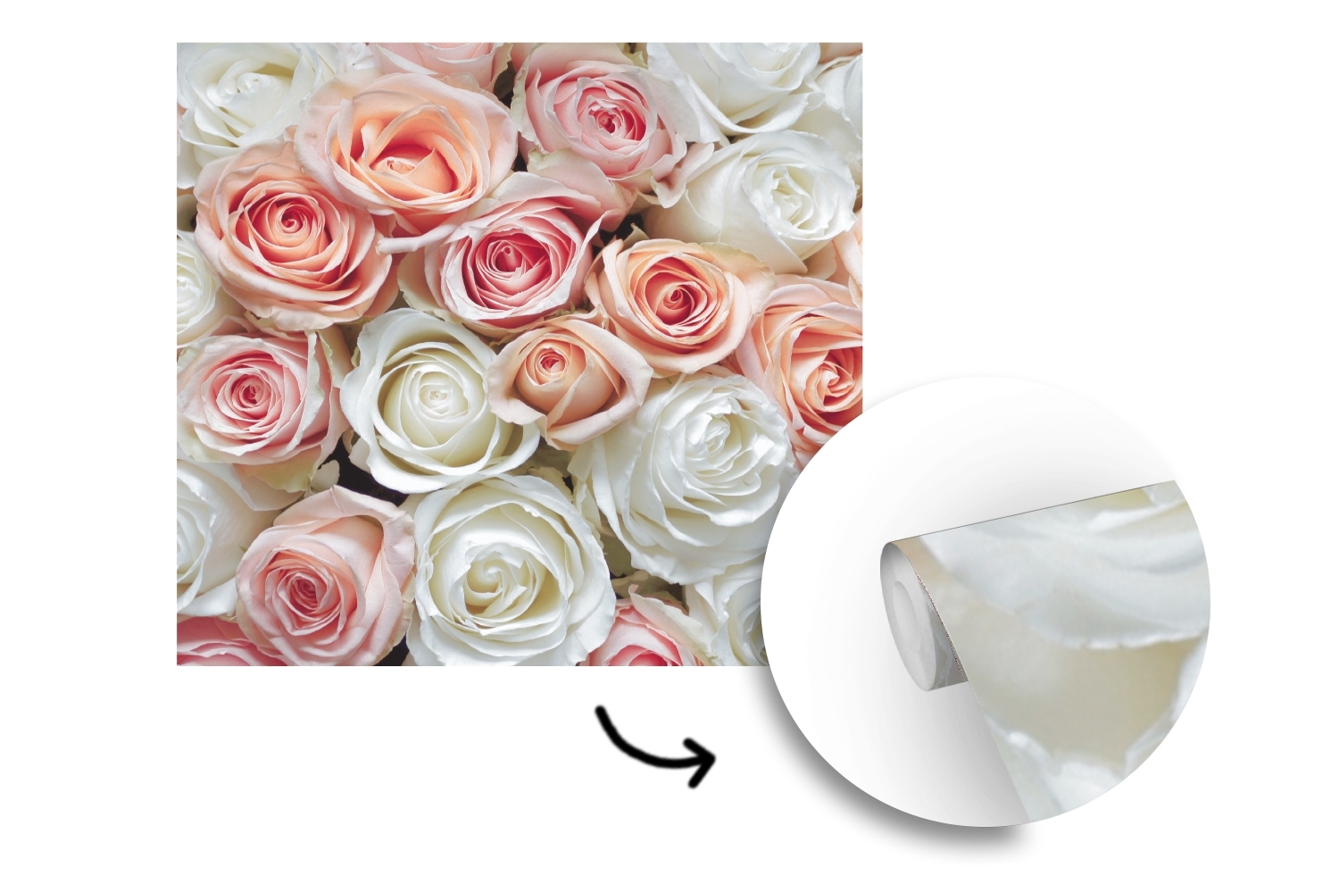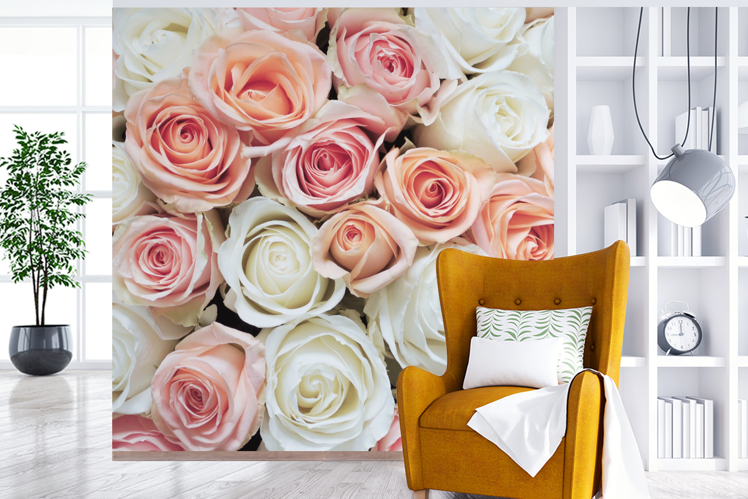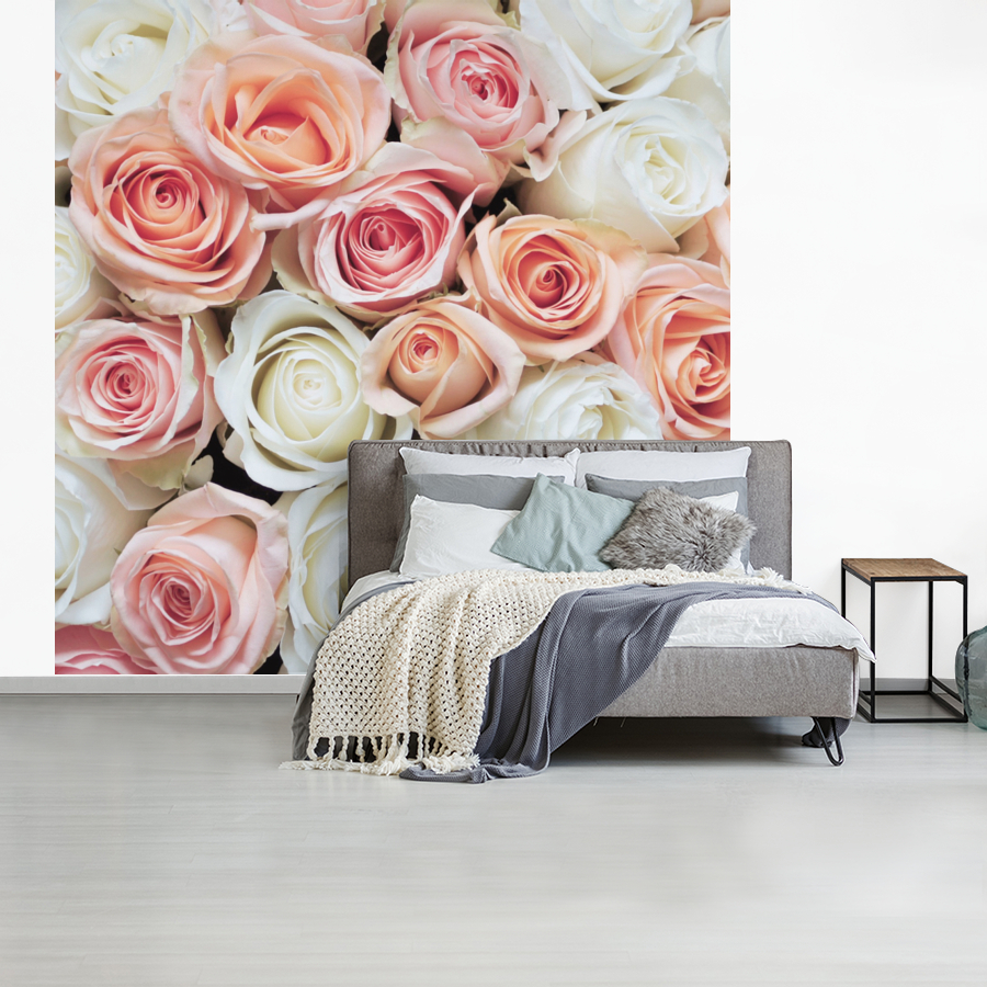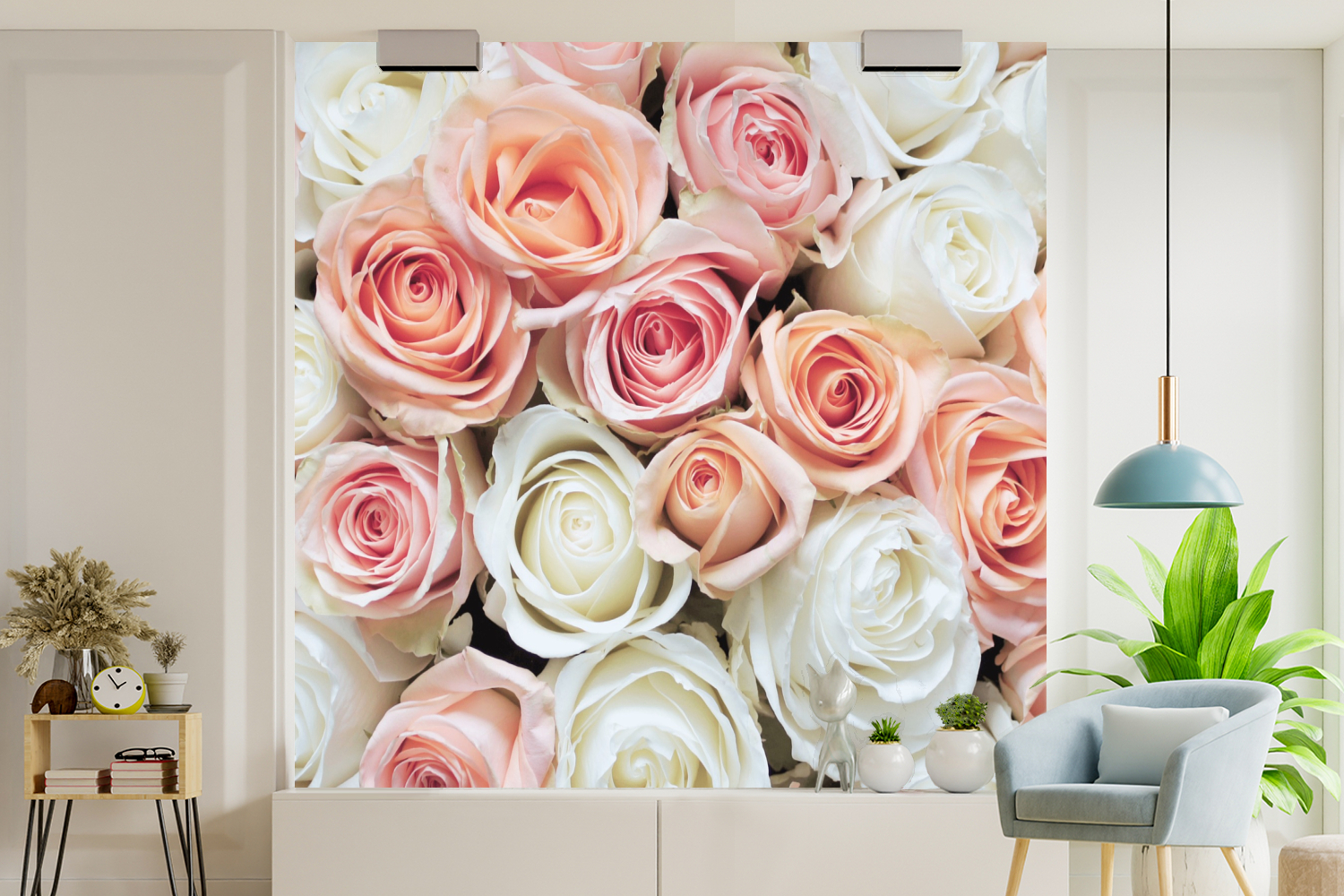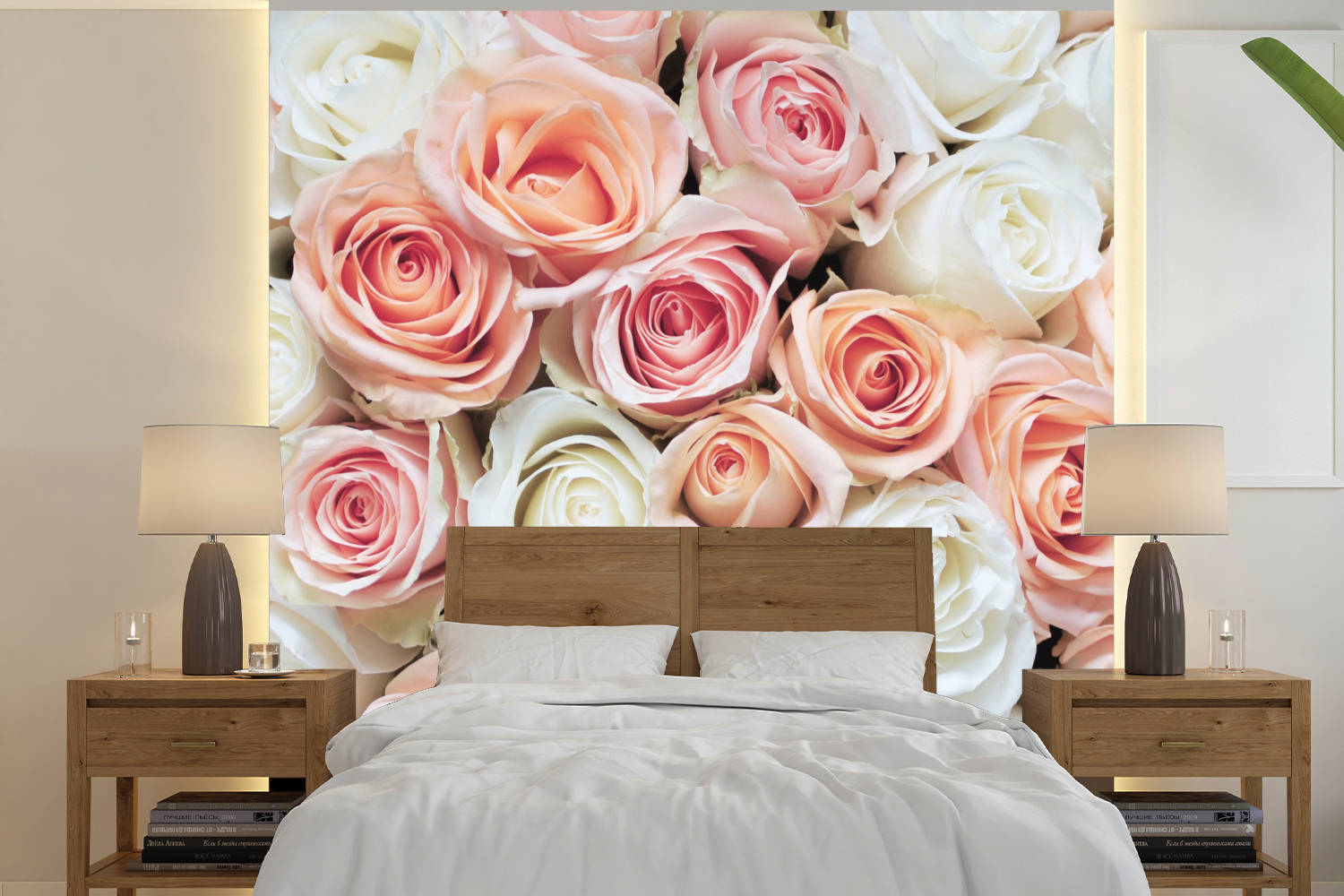 Papier peint Roses - Fleurs - Blanc - Rose Papier peint photo 260x260 cm Papier peint imprimé