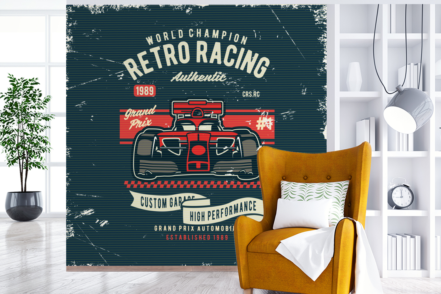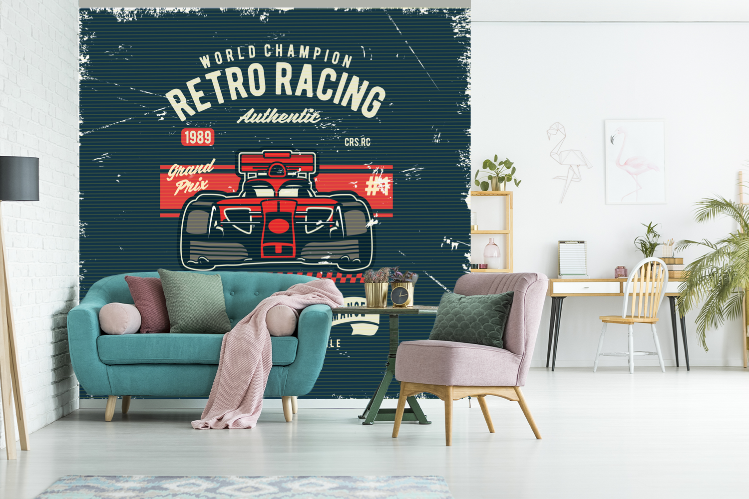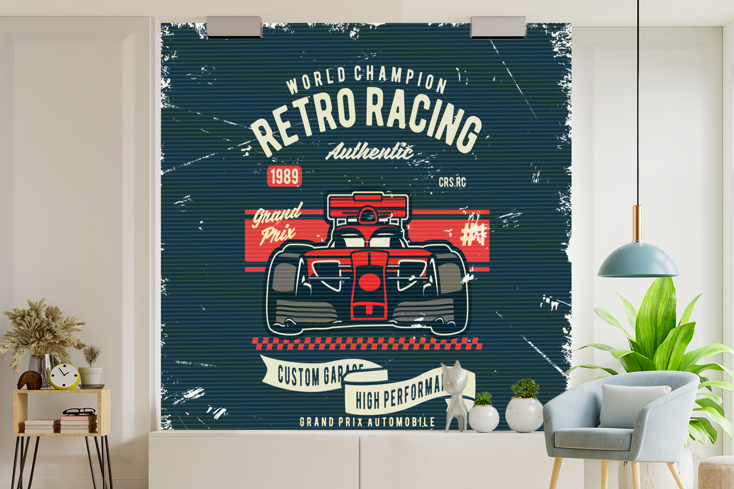 Papier peint Voiture - Course - Rétro - Dessin Papier peint photo 280x280 cm Papier peint imprimé