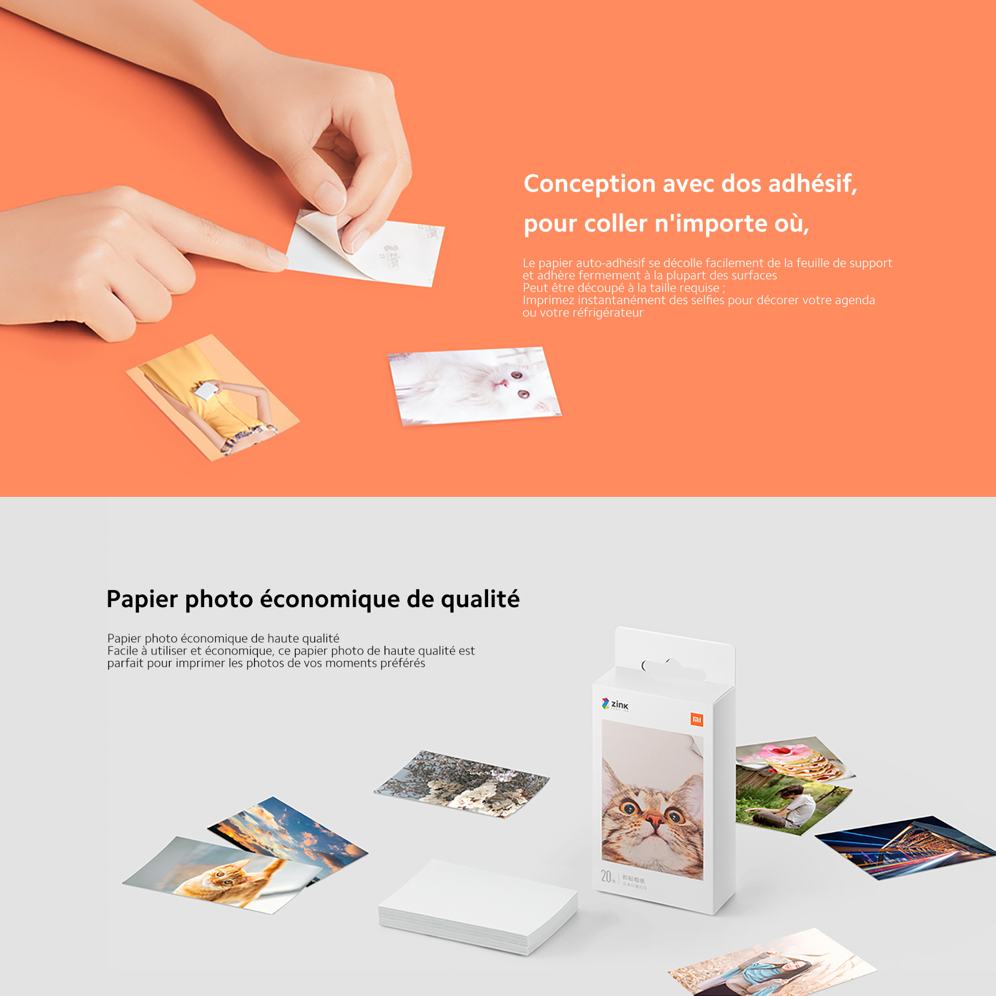 | Libellé | Papier photographique Xiaomi pour imprimante Imprimante photo portable Xiaomi Mi 20 unités |