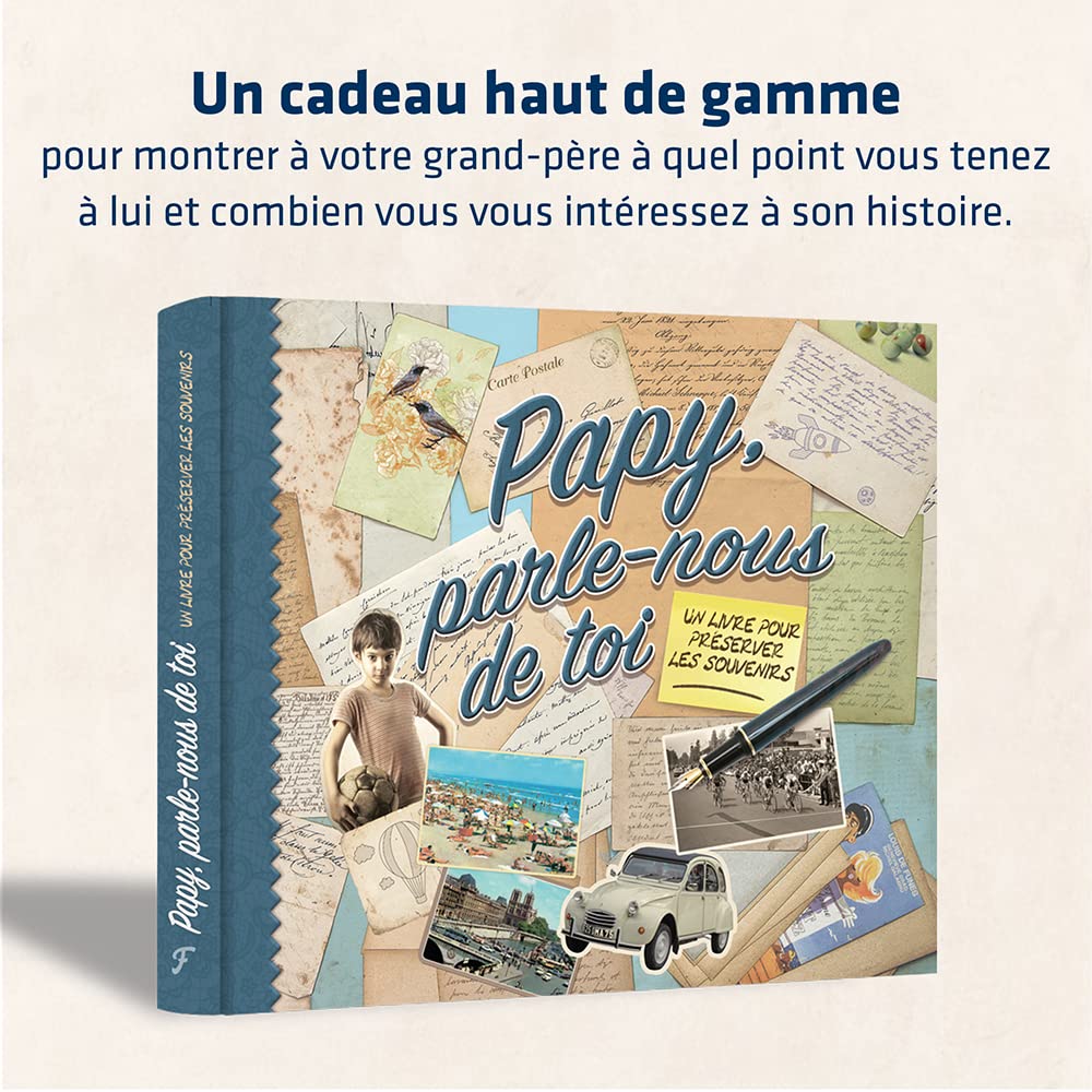 Un album à remplir pour que son grand-père laisse un témoignage écrit de sa vie grâce à un jeu de questions. Des images et des photographies d'époque évoquent la France d'antan.