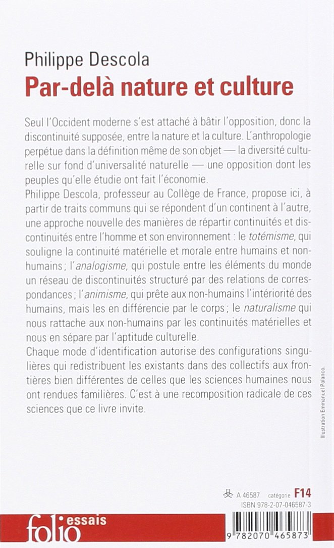 Seul l'Occident moderne s'est attaché à bâtir l'opposition, donc la discontinuité supposée, entre la nature et la culture. L'anthropologie perpétue dans la définition même de son objet - la diversité culturelle sur fond d'universalité naturelle - une opposition dont les peuples qu'elle étudie ont fait l'économie. Philippe Descola, professeur au Collège de France, propose ici, à partir de traits communs qui se répondent d'un continent à l'autre, une approche nouvelle des manières de répartir continuités et discontinuités entre l'homme et son environnement : le totémisme, qui souligne la continuité matérielle et morale entre humains et non-humains ; l'analogisme, qui postule entre les éléments du monde un réseau de discontinuités structuré par des relations de correspondances ; l'animisme, qui prête aux non-humains l'intériorité des humains, mais les en différencie par le corps ; le naturalisme qui nous rattache aux non-humains par les continuités matérielles et nous en sépare par l'aptitude culturelle. Chaque mode d'identification autorise des configurations singulières qui redistribuent les existants dans des collectifs aux frontières bien différentes de celles que les sciences humaines nous ont rendues familières. C'est à une recomposition radicale de ces sciences que ce livre invite.