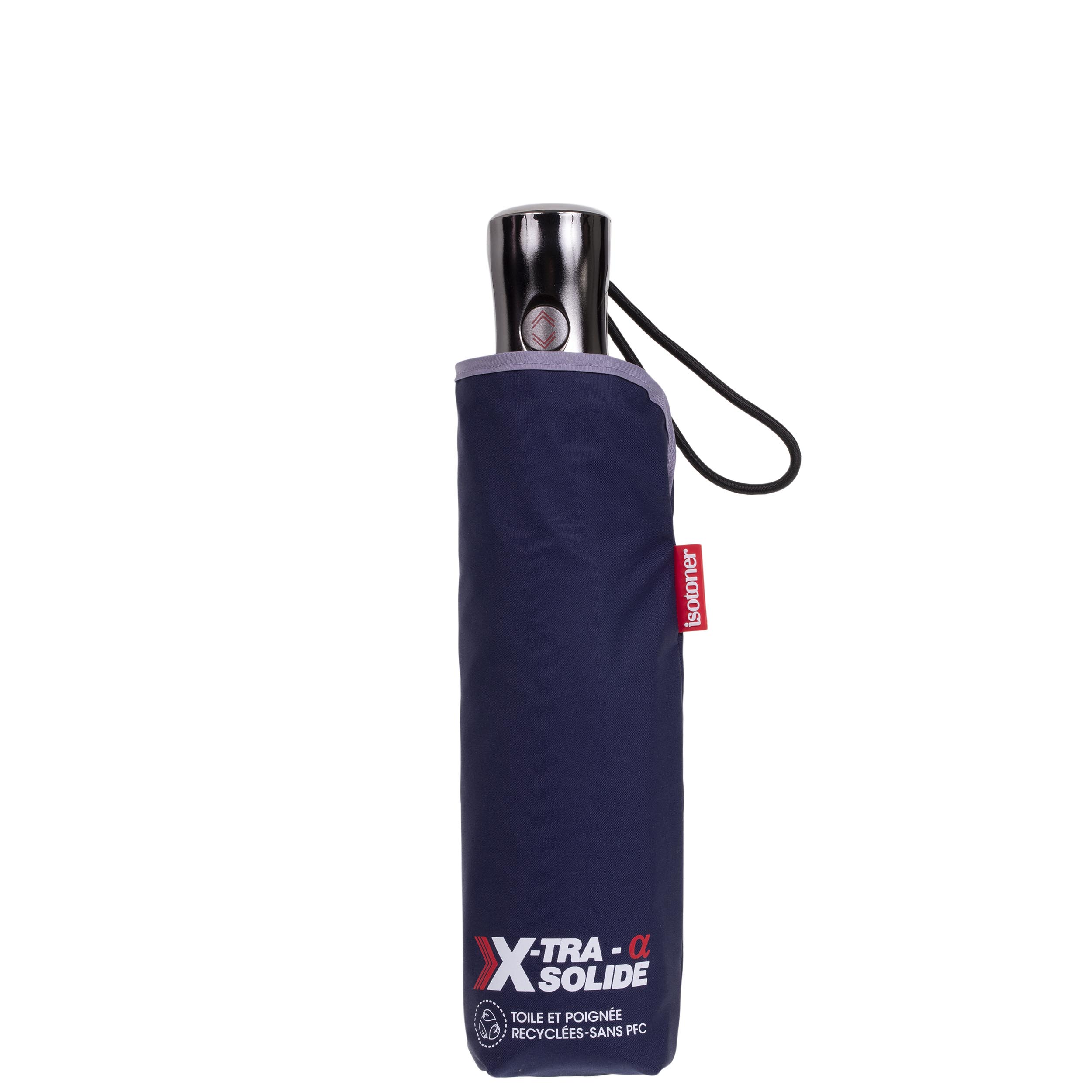 NOUVELLE FORME : découvrez notre nouvelle ligne de parapluie X-TRA SOLIDE Alpha. Ce parapluie, tendance avec sa toile ondulée marine, dispose d'une ouverture et fermeture automatique : en appuyant sur le bouton présent sur le manche, ouvrez votre parapluie automatiquement. En réappuyant sur le bouton, la couverture se refermera sur le mât. Ce parapluie utilise la technologie X-TRA SEC - ULTRA DEPERLANT. Un traitement invisible révolutionnaire qui permet à l'eau de glisser pour que les parapluies restent ultra secs ! X-TRA SOLIDE, une innovation technologique à l'épreuve du vent ! Véritable prouesse technique, ces parapluies sont ultra-résistants et anti retournements grâce à leur structure en aluminium renforcé et fibre de verre. Isotoner s’engage pour demain, tous nos parapluies en toile utilisent un traitement de déperlance sans PFC (perfluorocarbures). Ce parapluie mesure 28 cm plié.