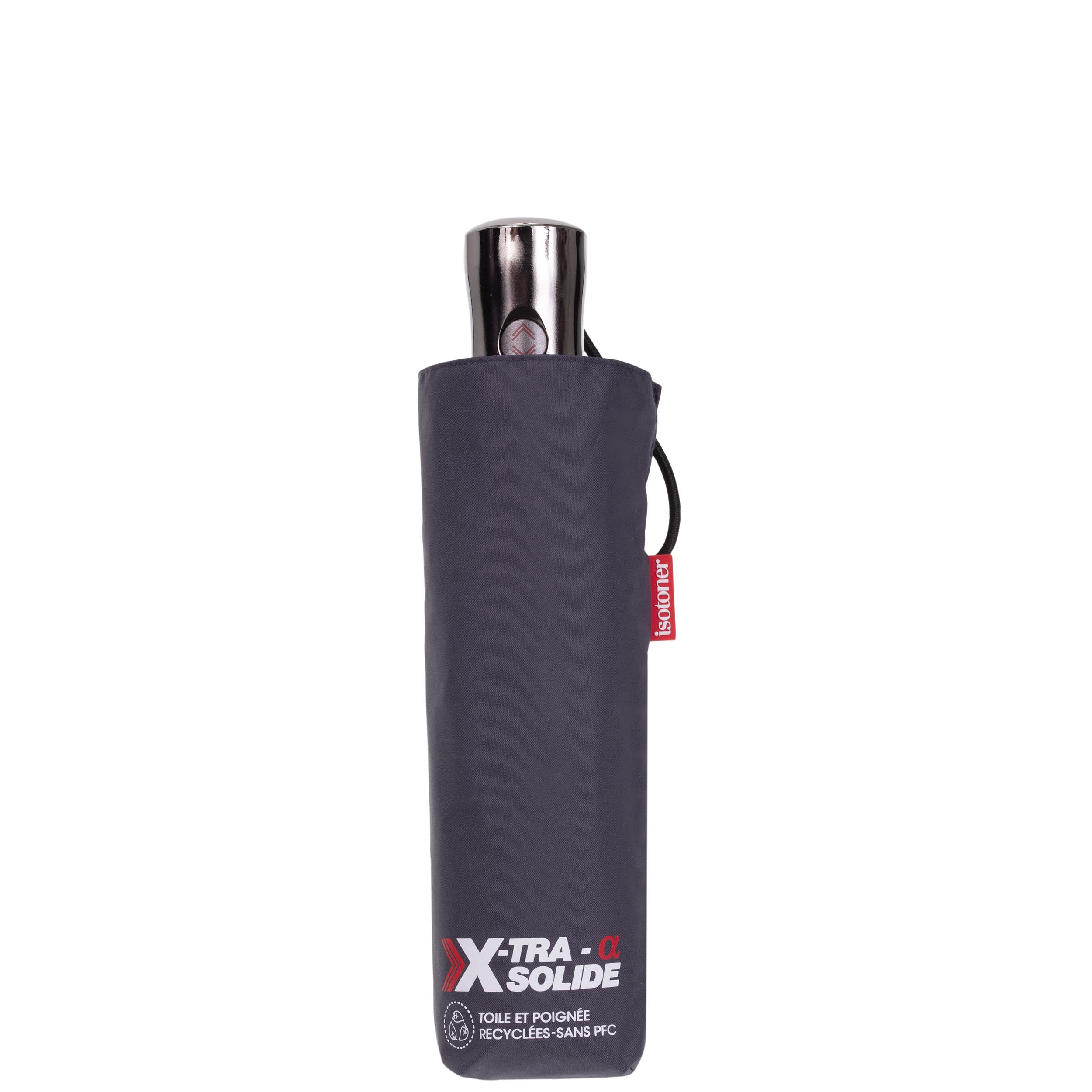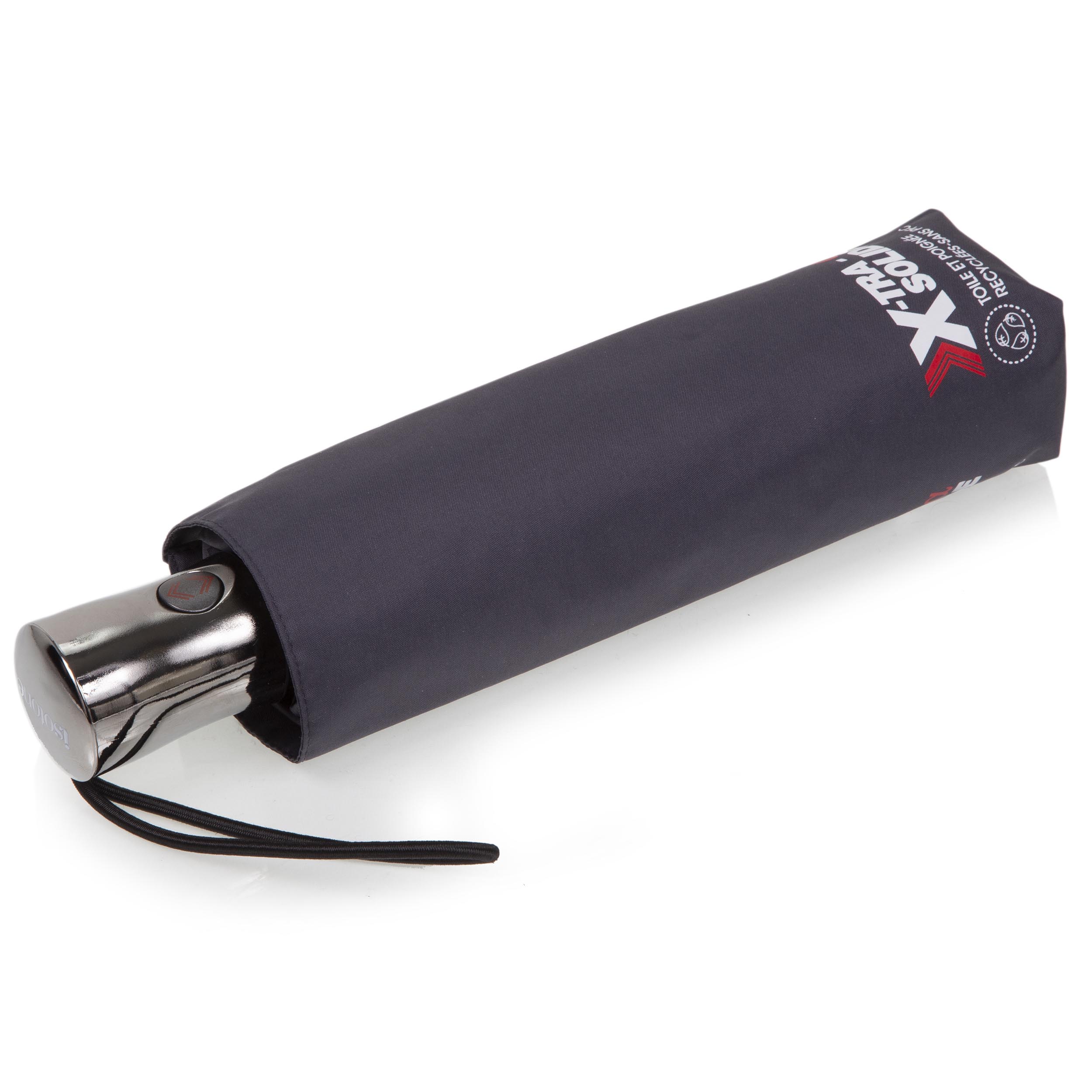 NOUVELLE FORME : découvrez notre nouvelle ligne de parapluie X-TRA SOLIDE ALPHA. Ce parapluie, tendance avec sa nouvelle forme de couverture à bords ondulés grise, dispose d'une ouverture et fermeture automatique : en appuyant sur le bouton présent sur le manche, ouvrez votre parapluie automatiquement. En réappuyant sur le bouton, la couverture se refermera sur le mât. Ce parapluie utilise la technologie X-TRA SEC, ULTRA DEPERLANT. Un traitement invisible révolutionnaire qui permet à l'eau de glisser pour que les parapluies restent ultra secs ! X-TRA SOLIDE, une innovation technologique à l'épreuve du vent ! Véritable prouesse technique, ces parapluies sont ultra-résistants et anti retournements grâce à leur structure en aluminium renforcé et fibre de verre. Isotoner s’engage pour demain, tous nos parapluies en toile utilisent un traitement de déperlance sans PFC (perfluorocarbures). Ce parapluie mesure 28 cm plié