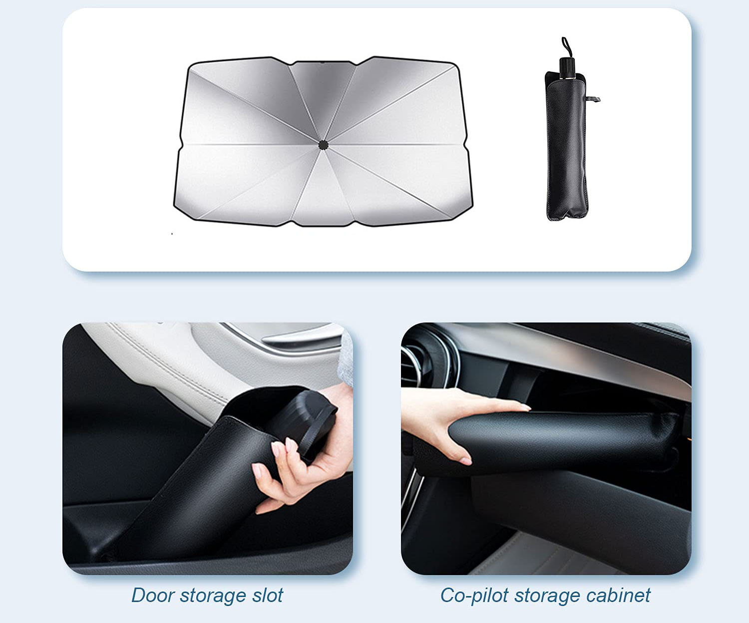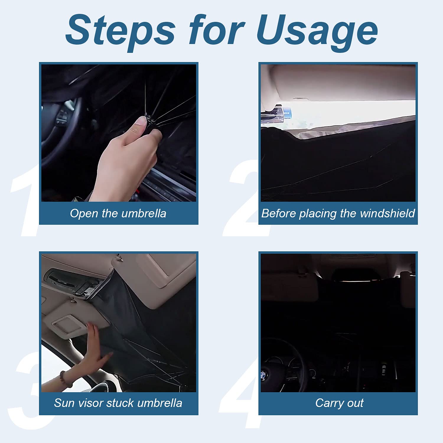 Le parapluie de pare-brise empêche le tableau de bord et le rembourrage de surchauffer, de se décolorer et de se fissurer et de garder votre voiture au frais et confortable. Il faut dix secondes pour replier le pare-soleil et il recouvre parfaitement le pare-brise.