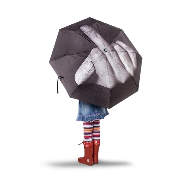 Votre parapluie est une insulte ambulante! Exprimer votre colère vis à vis de la météo avec cette parapluie des plus insolites.* Couleur : noir, gris * Matière parapluie : tissu imperméable * Matière manche : acier * Taille plié : 29 cm x 8 cm * Diamètre toile : 100 cm * Ouverture automatique Fonctions : parapluie Contenu : 1 Parapluie fuck