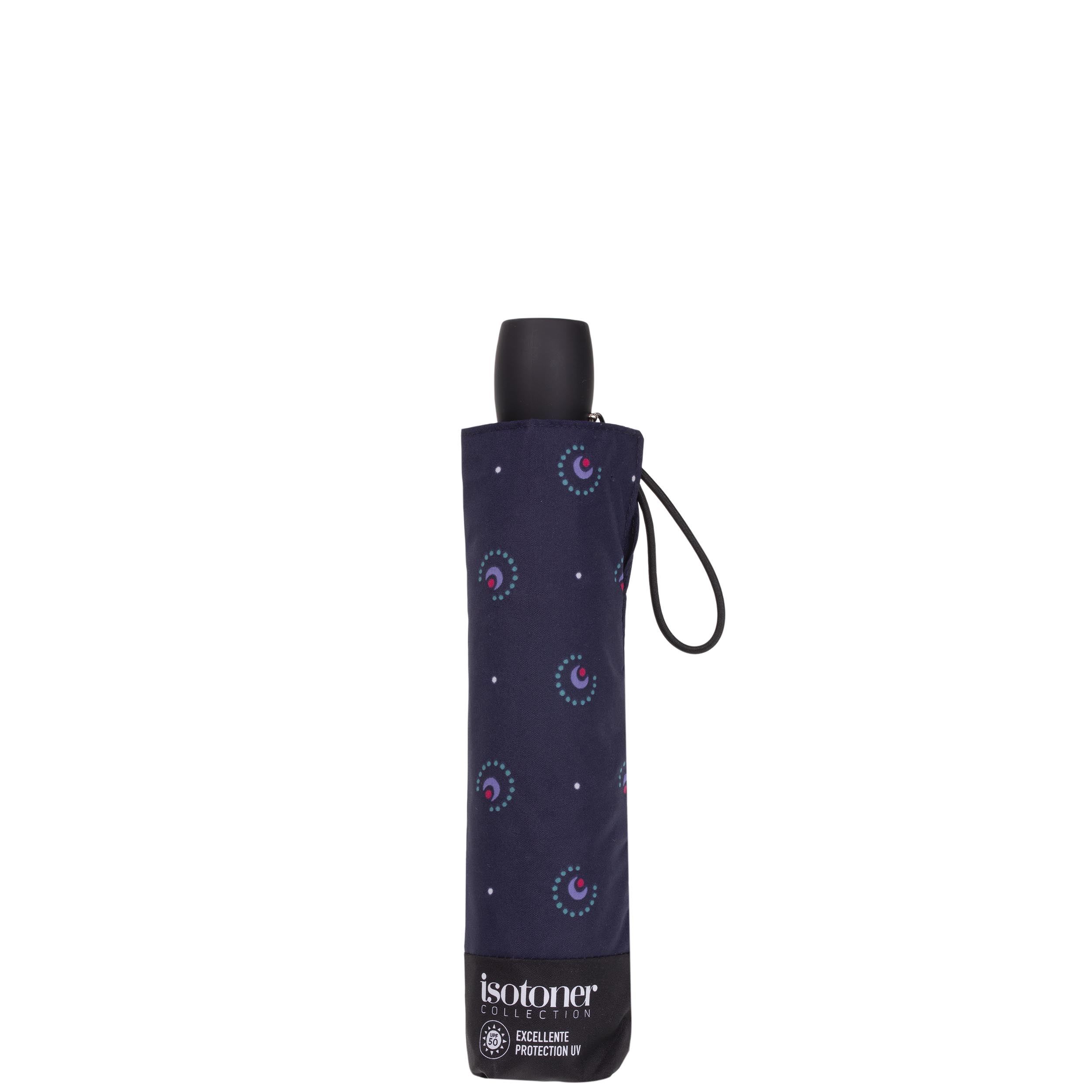 INNOVATION : PARAPLUIE SLIM AVEC UV50+ PROTECTION, TRAITEMENT ULTRA DEPERLANT X-TRA SEC SANS PFC* (*perfluorocarbure). Ce parapluie ombrelle lune de césar viendra égayer vos jours de pluie, tout en vous protégeant des intempéries grâce à sa large couverture de 94 cm ultra déperlante. L'eau ne s'infiltre pas dans la toile ! Ce n'est pas tout, ce parapluie regorge de qualités telles que : une légèreté incontestable avec 190 g seulement, une protection maximum contre les rayons du soleil UPF50+, et enfin une solidité hors pair grâce à ses 7 baleines en acier. Un étui assorti et une dragonne pour le tenir à la main viennent parfaire le tout. Replié, ce parapluie ne mesure que 24,6 cm de longueur. Ce parapluie possède une couverture faite à partir de matériaux recyclés.