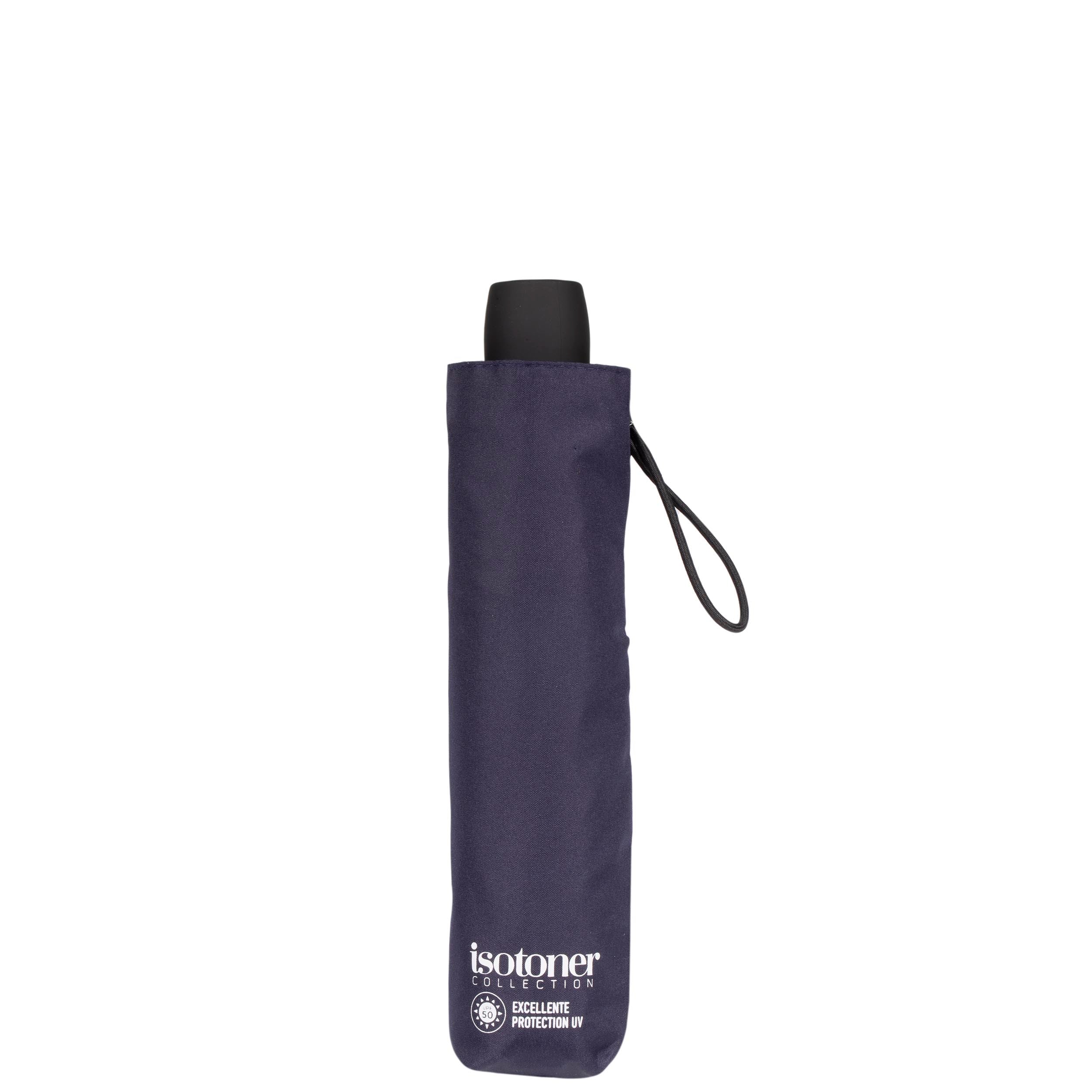 INNOVATION : PARAPLUIE SLIM AVEC UNE PROTECTION UV50+, TRAITEMENT ULTRA DEPERLANT X-TRA SEC SANS PFC* (*perfluorocarbure). Ce parapluie ombrelle de couleur marine viendra égayer vos jours de pluie, tout en vous protégeant des intempéries grâce à sa large couverture de 94 cm ultra déperlante. L'eau ne s'infiltre pas dans la toile ! Ce n'est pas tout, ce parapluie regorge de qualités telles que : une légèreté incontestable avec 190 grammes seulement, une protection maximum contre les rayons du soleil UPF50+, et enfin une solidité hors pair grâce à ses 7 baleines en acier. Un étui assorti et une dragonne pour le tenir à la main viennent parfaire le tout. Replié, ce parapluie ne mesure que 24,6 cm de longueur. Ce parapluie possède une couverture faite à partir de matériaux recyclés.