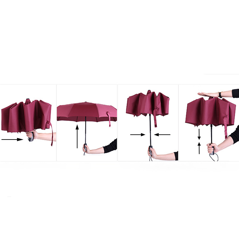 Parapluie pliant automatique - 10 baleines, colle noire Black
