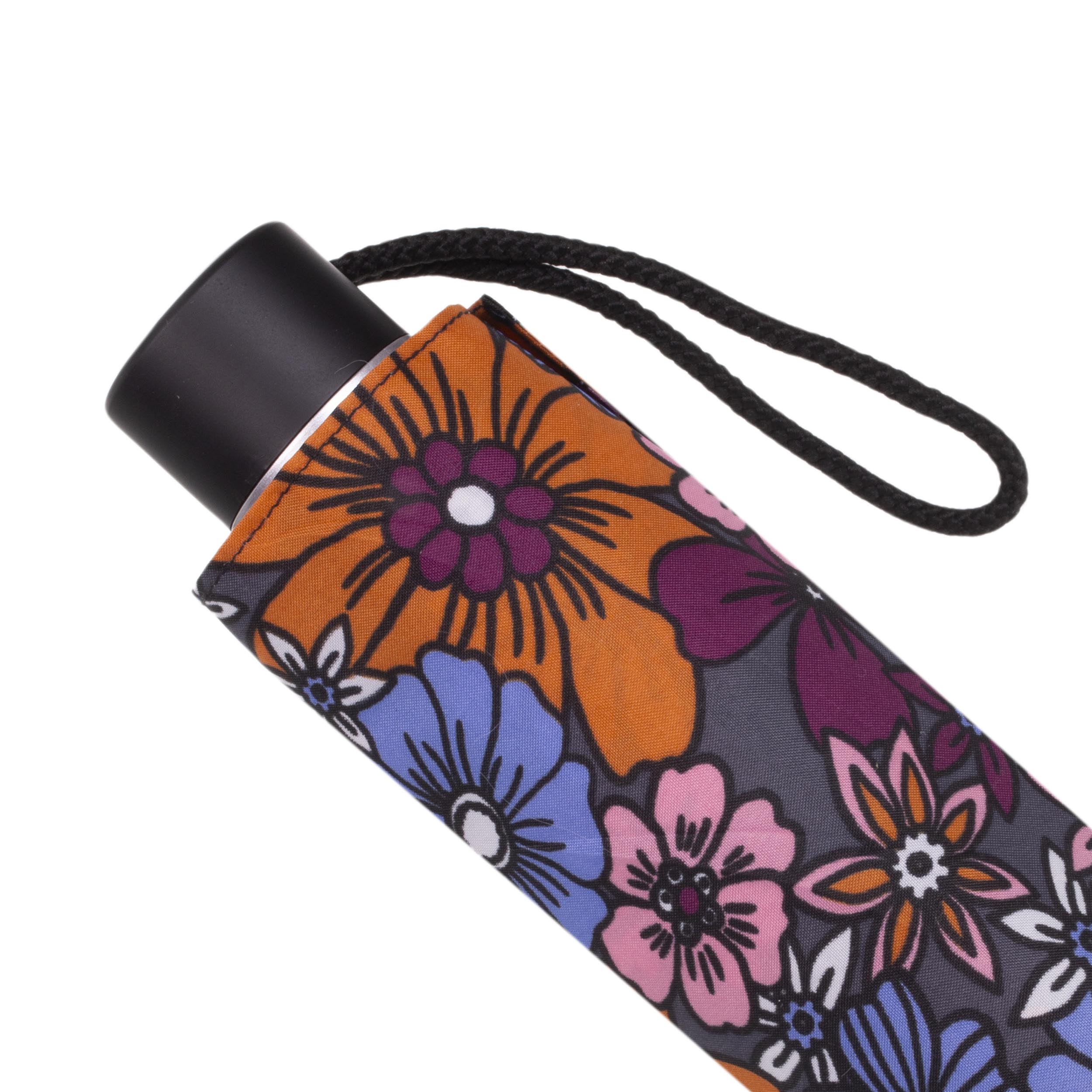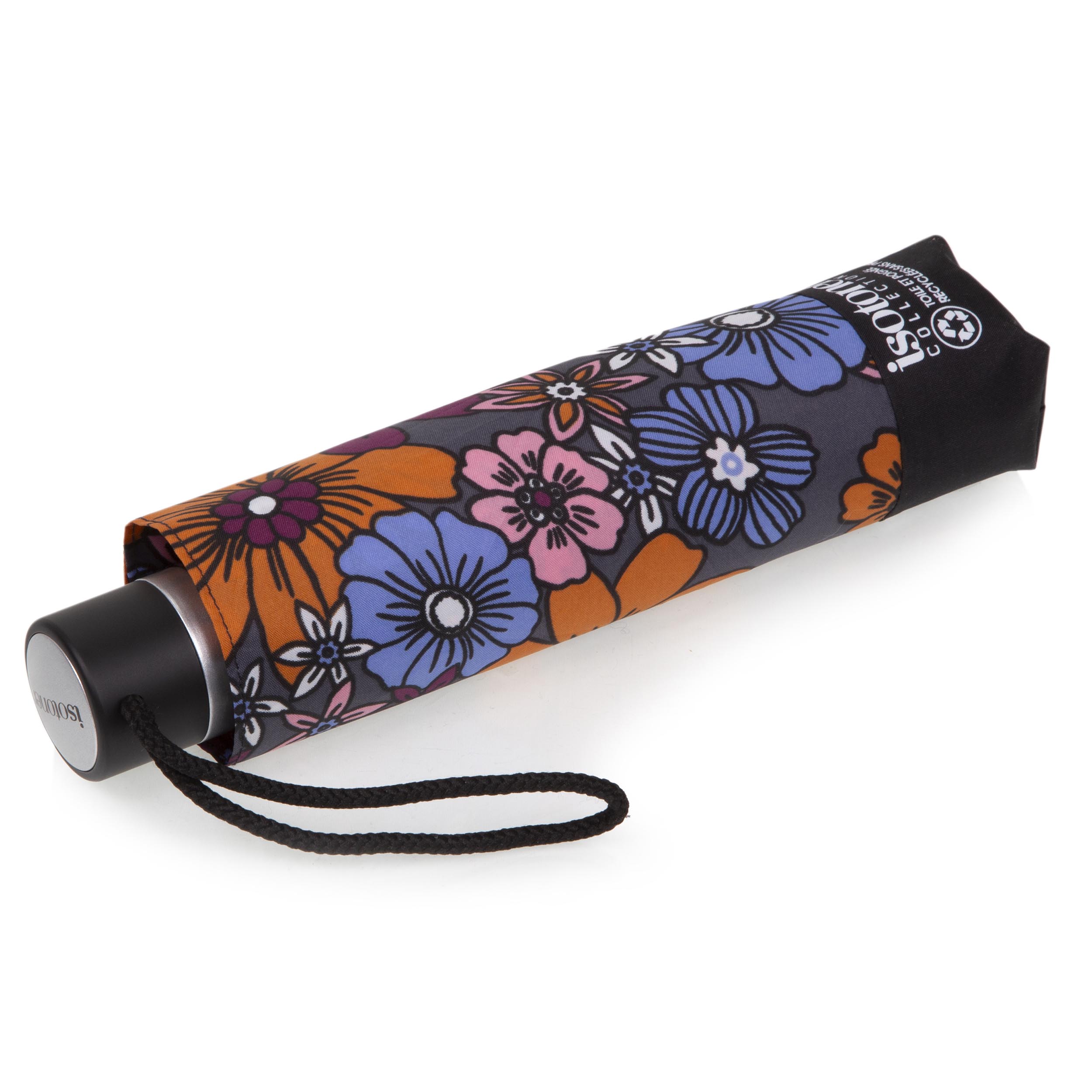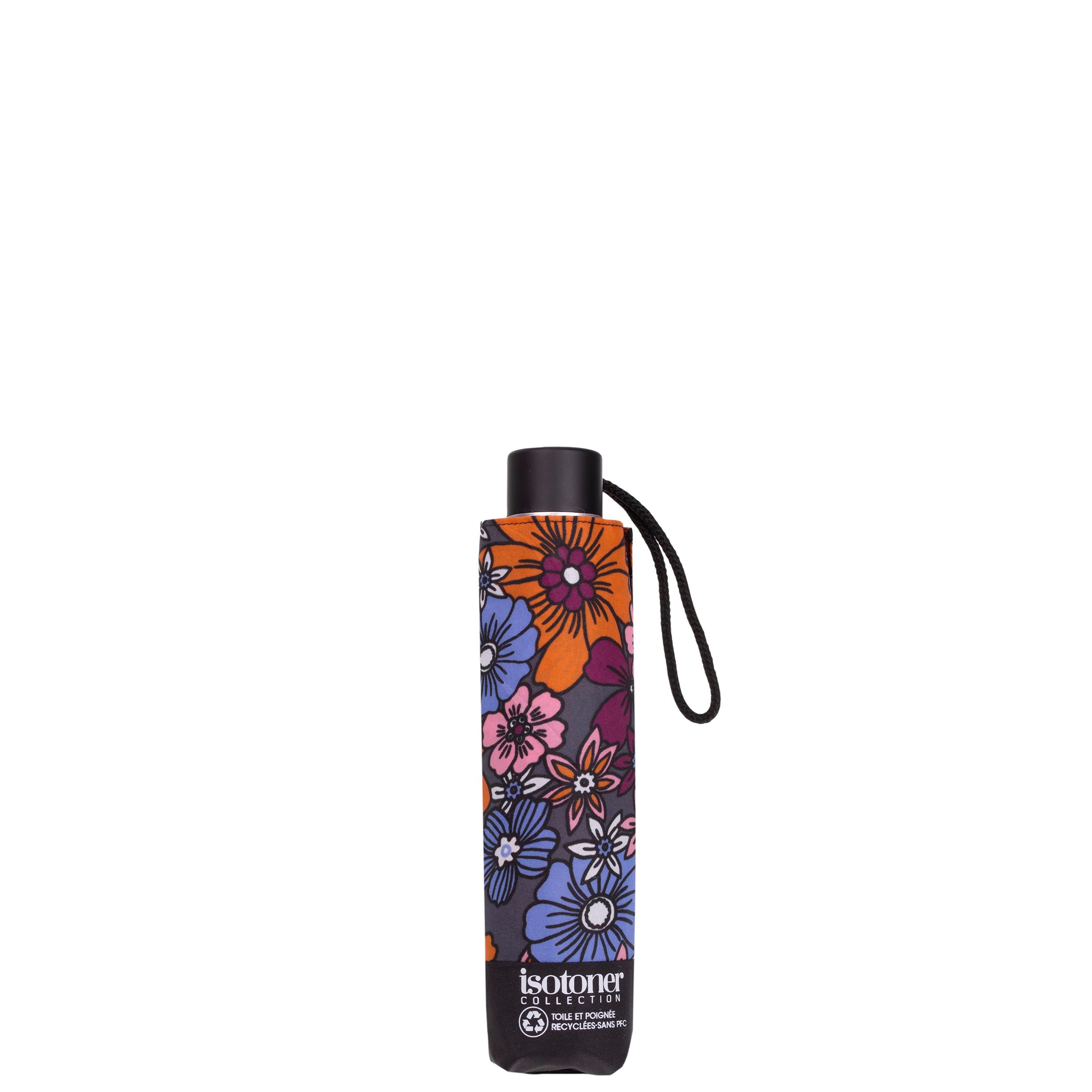 Ce parapluie de 23 cm de longueur (taille moyenne) se replie manuellement grâce à son mât en acier de trois sections. Sa toile ultra déperlante laisse la large couverture de parapluie (90 cm) sèche une fois la pluie terminée. Il pèse 300 g avec une structure de 8 baleines en acier pour la solidité. Tout cela, avec un motif fleurs seventies qui apporte une touche de gaieté. Enfin, Isotoner propose une toile et une poignée 100% recyclées, conçues à partir de plastique recyclé. Un étui vous permet de ranger le parapluie.