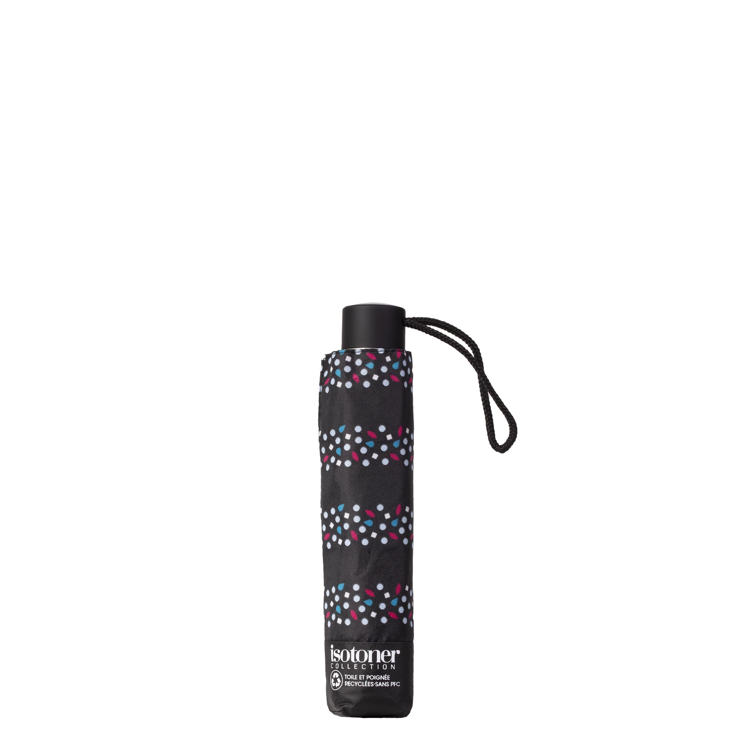 TOILE ET POIGNEE 100% RECYCLEES Isotoner utilise la Technologie X-TRA SEC - ULTRA DEPERLANT. Un traitement invisible révolutionnaire qui permet à l'eau de glisser pour que les parapluies restent ultra secs ! De plus, Isotoner s’engage pour demain, tous nos parapluies en toile utilisent un traitement de déperlance sans PFC (perfluorocarbures). Ultra résistant grâce à sa structure en acier, ce parapluie avec ses rayures bijoux bénéficie d'une grande couverture à un prix très économique. Un excellent rapport solidité/prix ! Ce parapluie pèse 300 grammes et dispose de 8 baleines en acier qui en font un parapluie solide. Sa large canopée de 90 cm vous protège de la pluie.