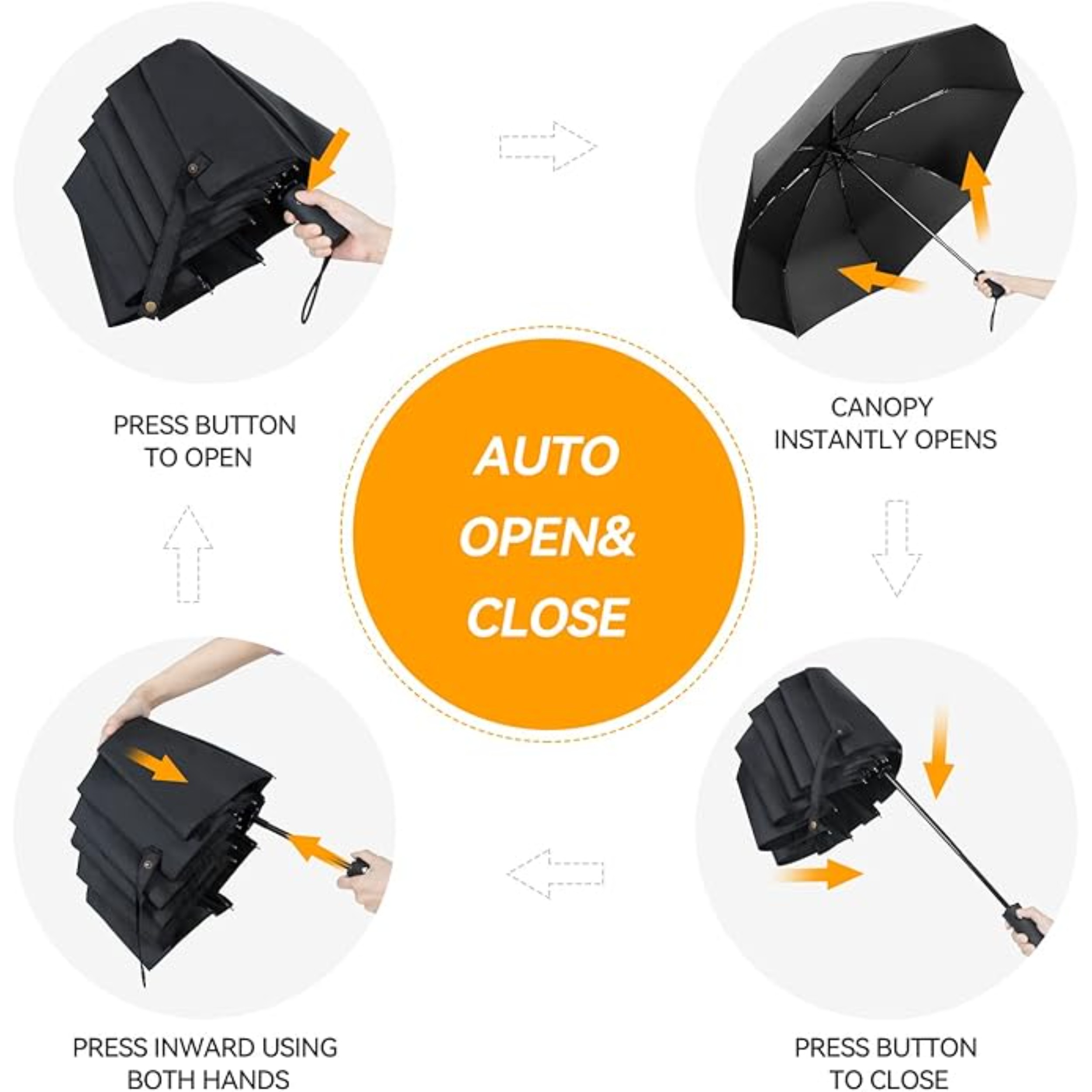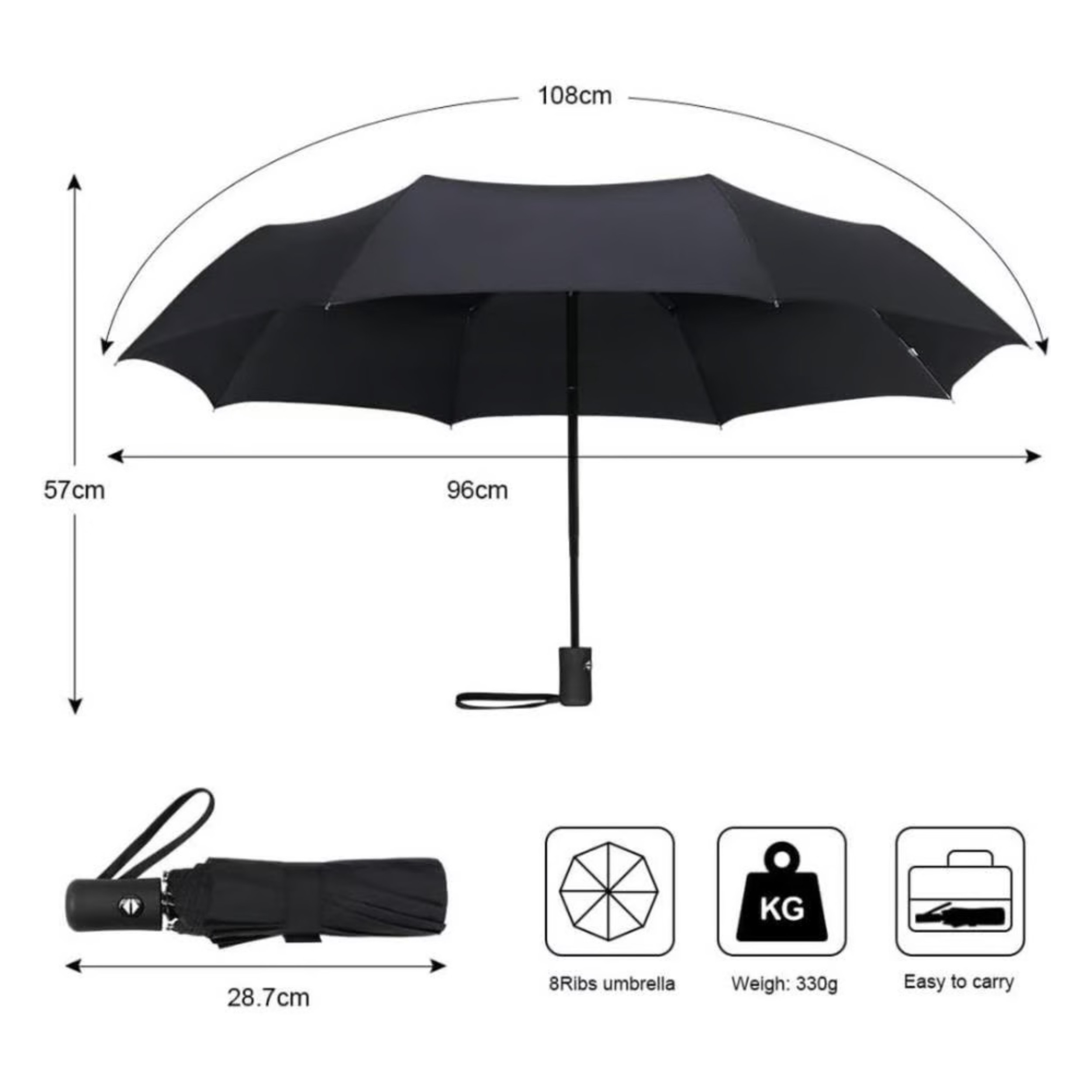 Grâce à son mécanisme d’ouverture et de fermeture automatique, vous pouvez déployer et replier votre parapluie d’une simple pression sur le bouton, rendant son utilisation simple et rapide dans la vie de tous les jours.
