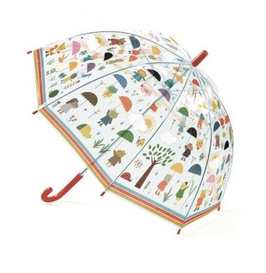 Découvrez le parapluie sous la pluie de Djeco, un magnifique parapluie illustré en plastique transparent pour égayer les jours de pluies.
