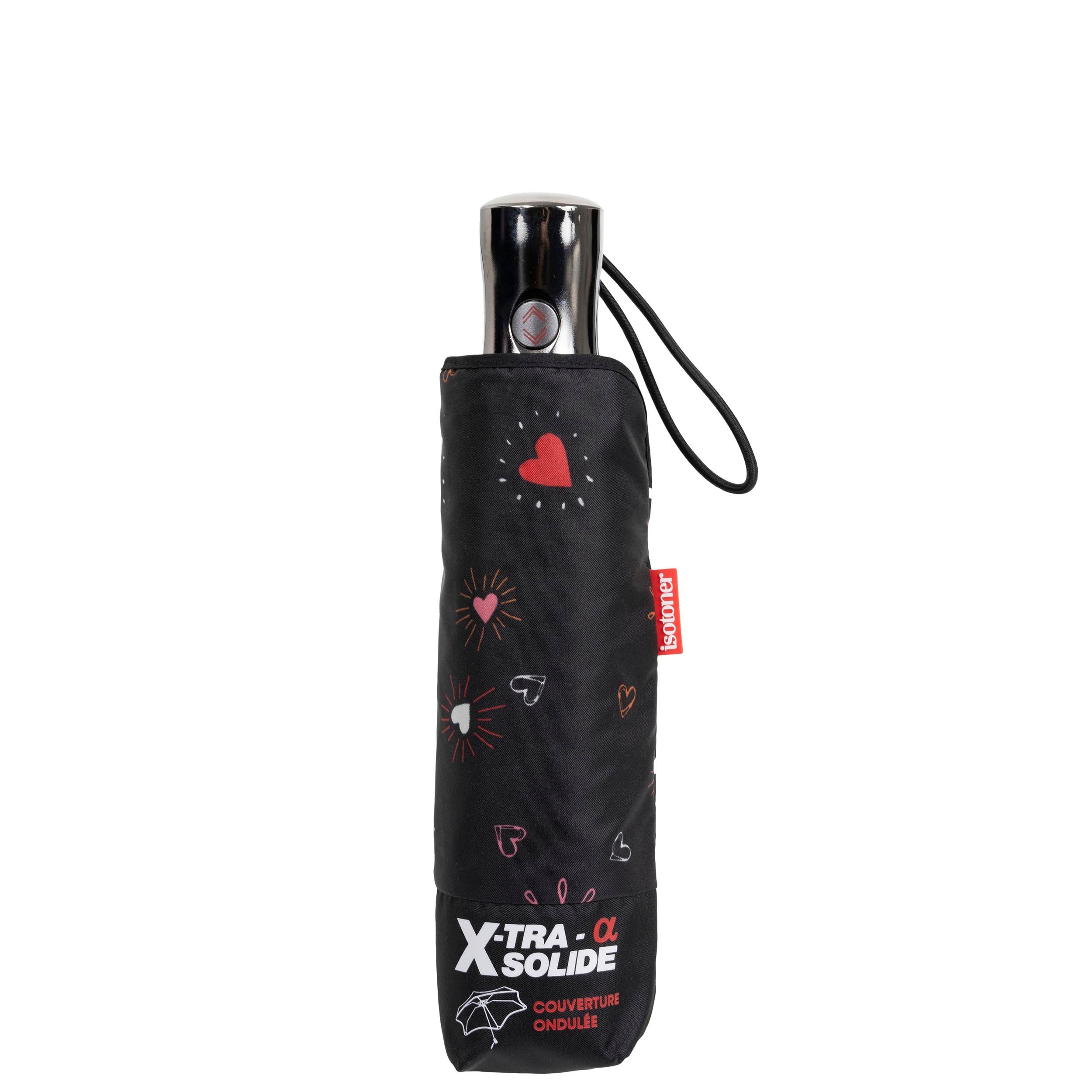 Découvrez notre nouvelle ligne de parapluie X-TRA SOLIDE ALPHA. Ce parapluie Coeur Rouge, tendance avec sa nouvelle forme de couverture à bords ondulés, dispose d'une ouverture et fermeture automatique : en appuyant sur le bouton présent sur la manche, ouvrez votre parapluie automatiquement. En réappuyant sur le bouton, la couverture se refermera sur le mât, il ne vous restera plus qu'à replier le mât jusqu'à la poignée. Ce parapluie utilise la X-TRA SEC - ULTRA DEPERLANT, un traitement invisible révolutionnaire qui permet à l'eau de glisser pour que les parapluies restent ultra secs ! Ce parapluie fait partie de notre gamme X-TRA SOLIDE : véritable prouesse technique, ces parapluies sont ultra-résistants et anti retournement grâce à leur structure en aluminium renforcé et fibre de verre. Ce parapluie mesure 28 cm plié et il pèse 330 g. Sa large couverture a un diamètre ouvert de 97 cm. Il dispose de 8 baleines acier qui en font un parapluie solide.