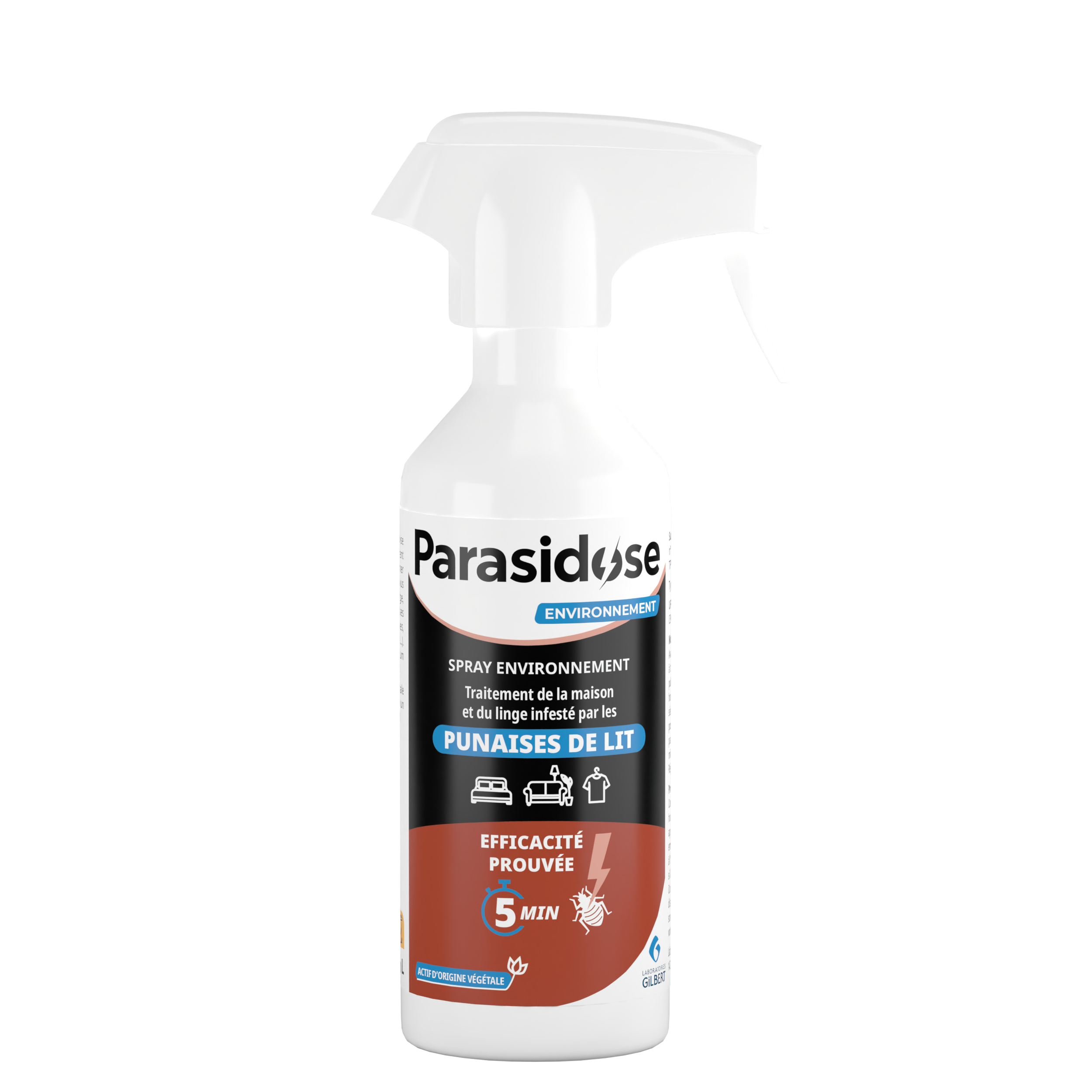 Le spray environnement Parasidose est le complément ideal pour combattre efficacement les punaises de toutes les surfaces textiles et d'éviter ainsi le risque de réinfestation. Il élimine les punaises de toutes les surfaces textiles (literie, matelas, canapé, appuis tête...) et objets non lavables en machine.