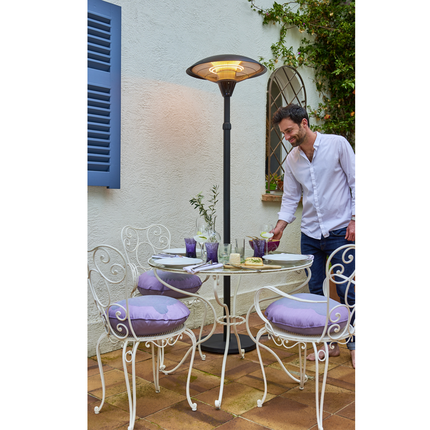 852.2096 - parasol chauffant électrique 2100w noir - Idéal pour les soirées d'automne et d'hiver en famille, ou entre amis, continuez à profiter de votre terrasse, même lorsque les températures sont fraîches ! - Structure noir