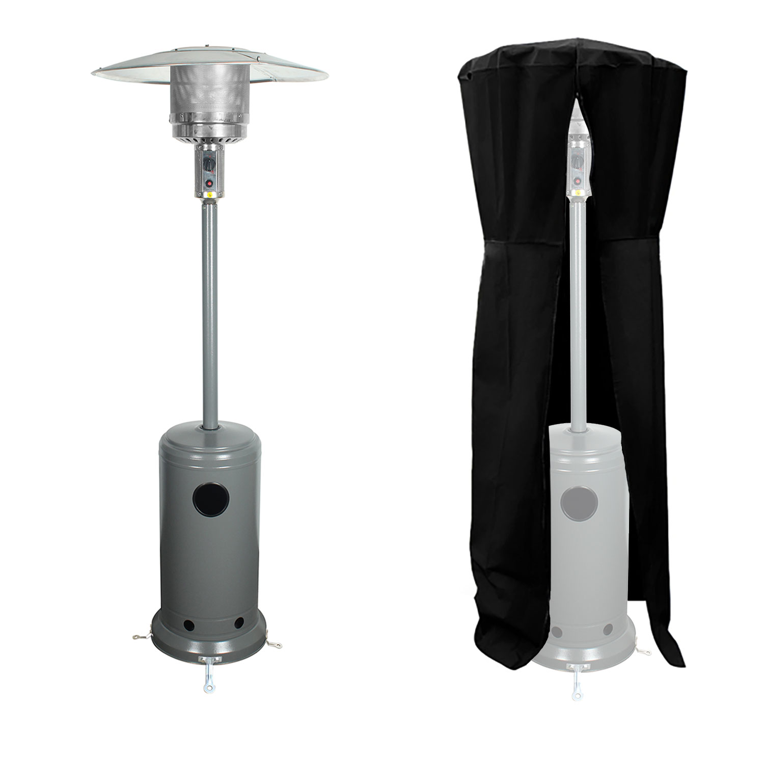 Parasol chauffant OSLO - chauffage d'extérieur gaz - acier gris + housse