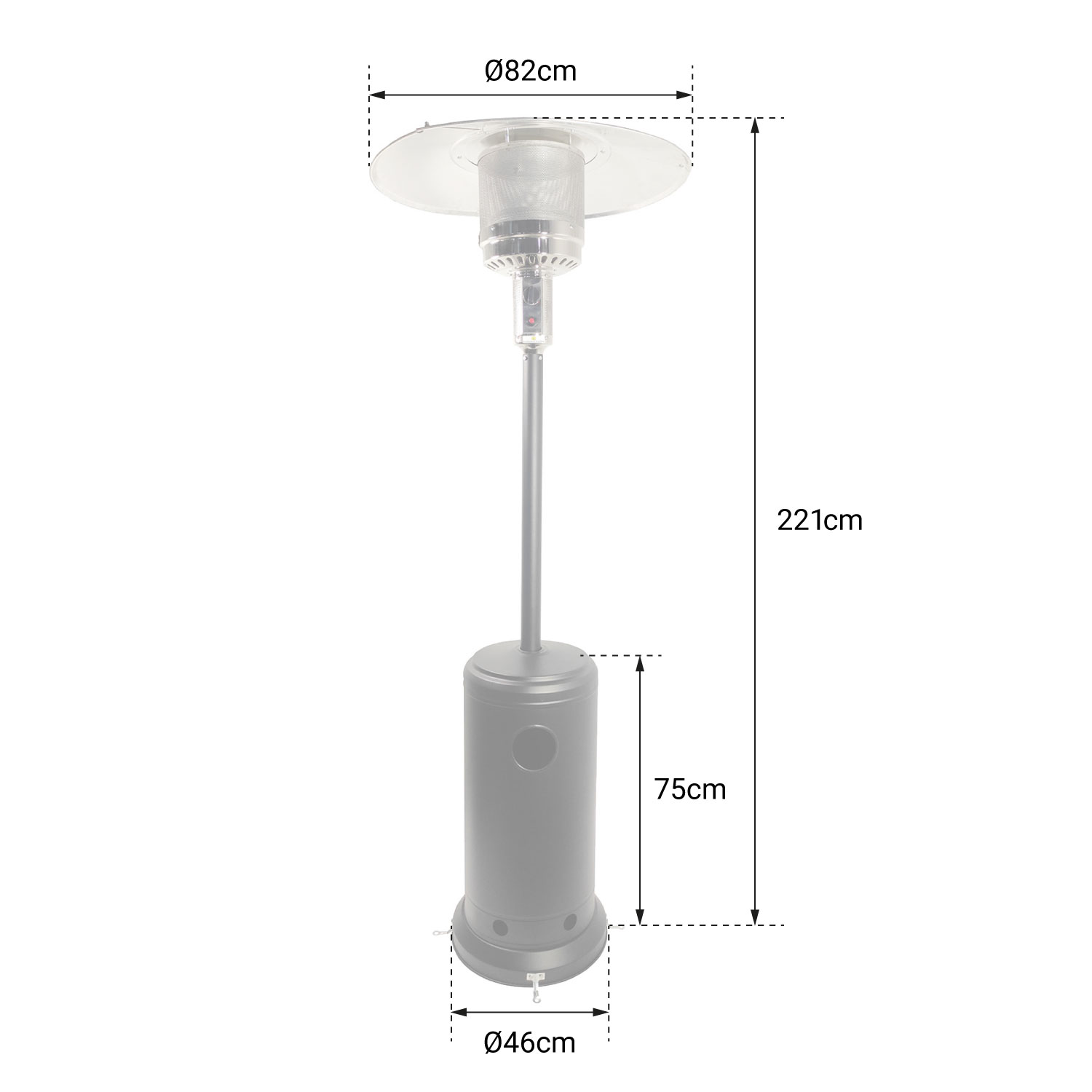 - Parasol chauffant : H 221cm