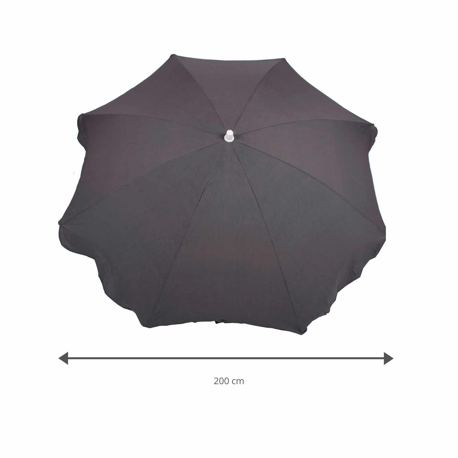 Parasol idéal pour se protéger du soleil dans les espaces extérieurs. Placez cet accessoire sur votre terrasse ou votre jardin car il s'adapte à tous les styles. Parasol de 200 cm de diamètre avec proprieté Anti-Uva 30. Avec une structure d'aluminium qui offre une fermeté et une bonne résistance aux intempéries. Caractéristiques: - Matériel: Bâche anti-tâches. - 200 cm de diamètre. - Anti – UV 30. - Fabriqué en Espagne. - Base non inclus. - Couleur: Anthracite. - Pieds Compatibles: Parasol Plastique Chillvert, Base Parasol Plastique avec roues et Base Parasol en Ciment Chillvert.