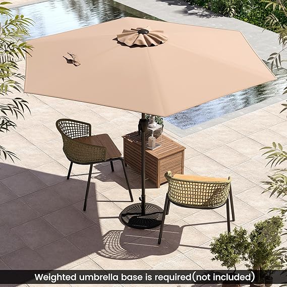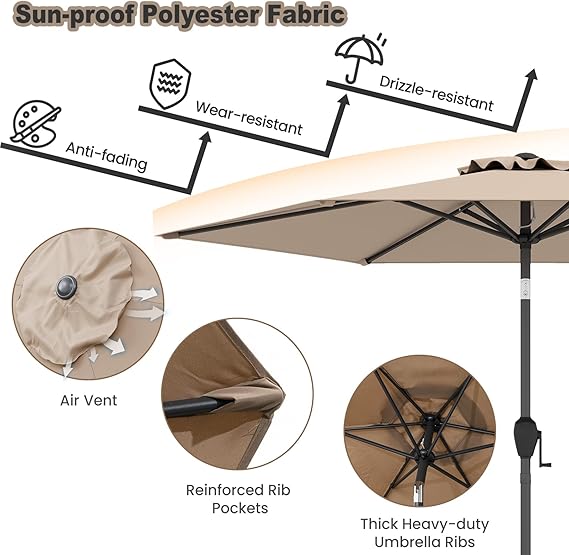 - REGLAGE FLEXIBLE DE L'ANGLE : Ce parasol de jardin est conçu avec un système unique d'inclinaison par bouton-poussoir, qui peut facilement régler l'angle d'inclinaison jusqu'à 35°, vous aidant à régler l'angle du store librement à tout moment, profitant ainsi d'une ombre optimale et vous protégeant du soleil fort.