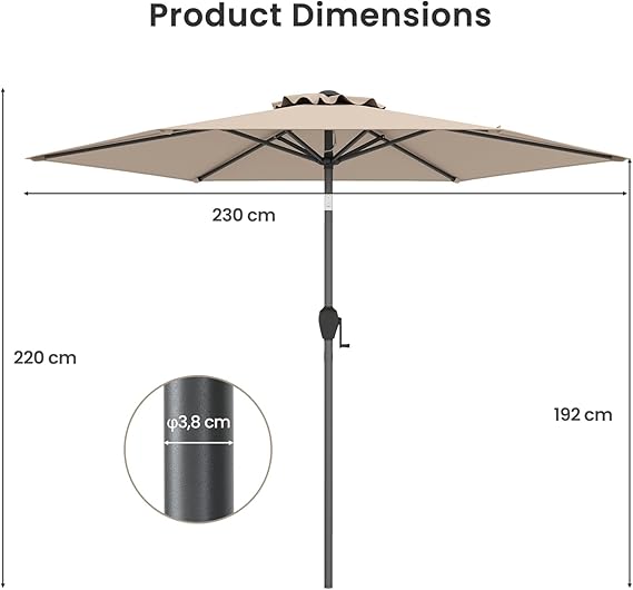 - ATTENTION : Ce parasol ne comprend pas de base de parasol. Si vous en avez besoin, veuillez l'acheter en supplément !