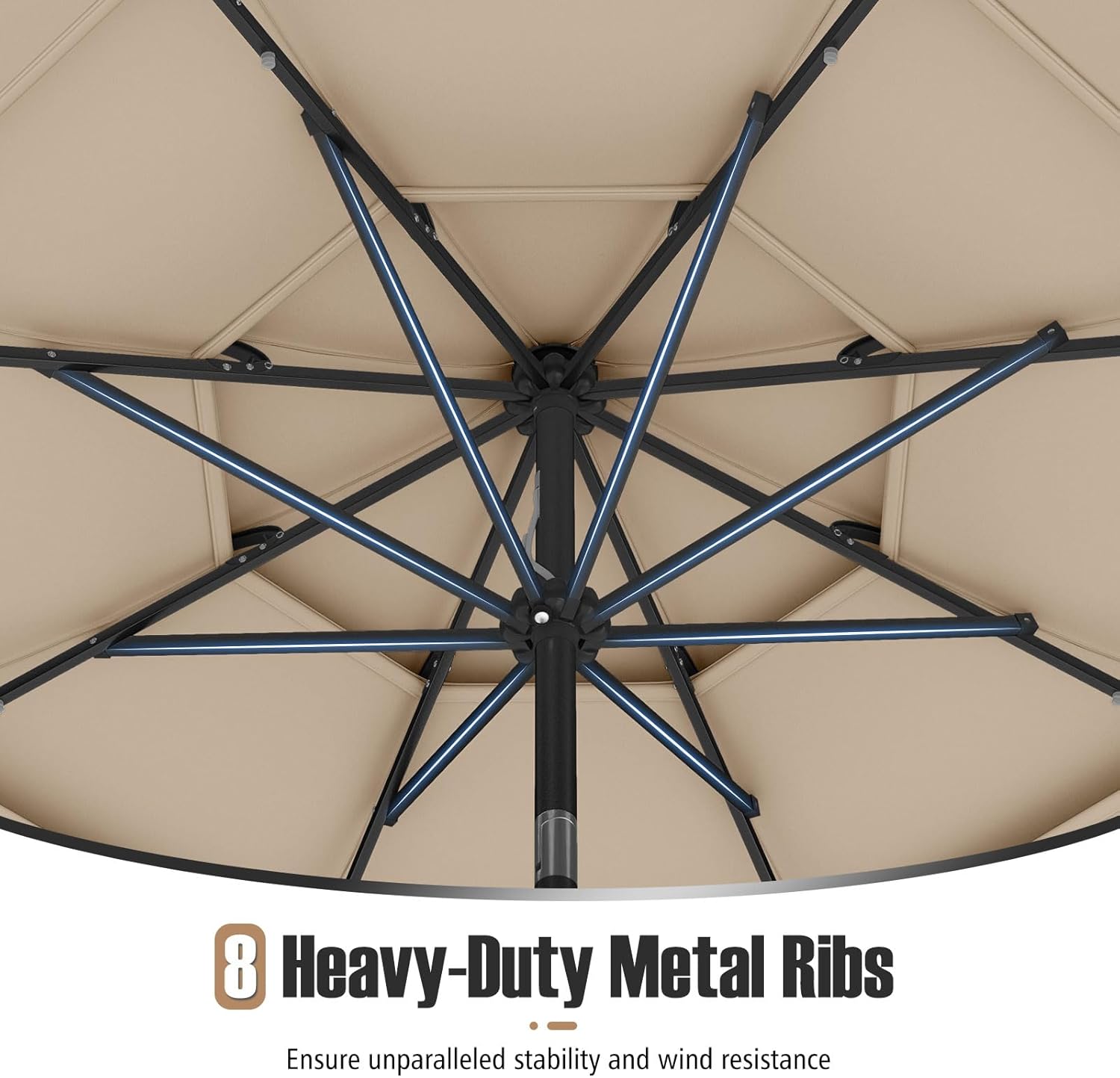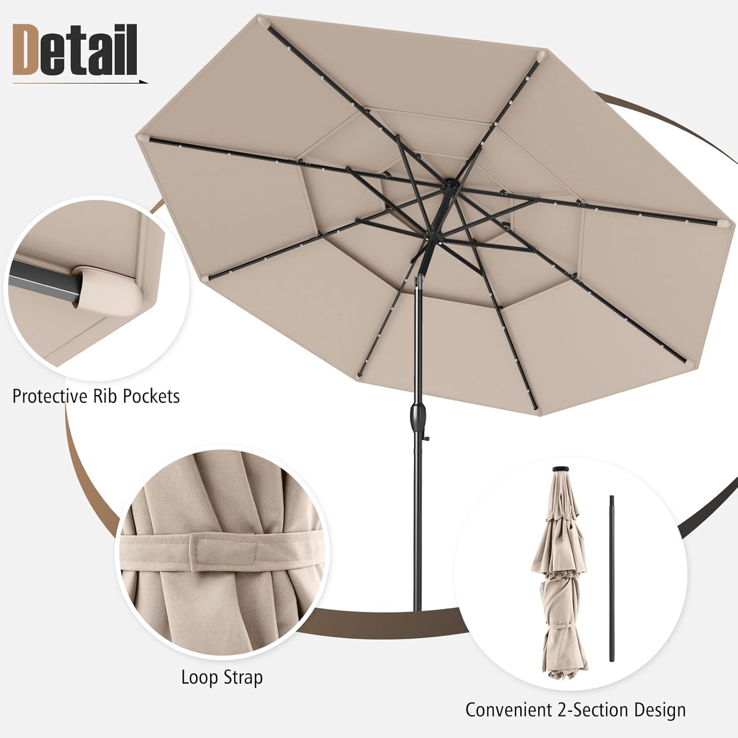 Parasol de jardin exterieur avec 32 lumières led 3m parasol balcon inclinable avec toit à 3 niveaux,beige