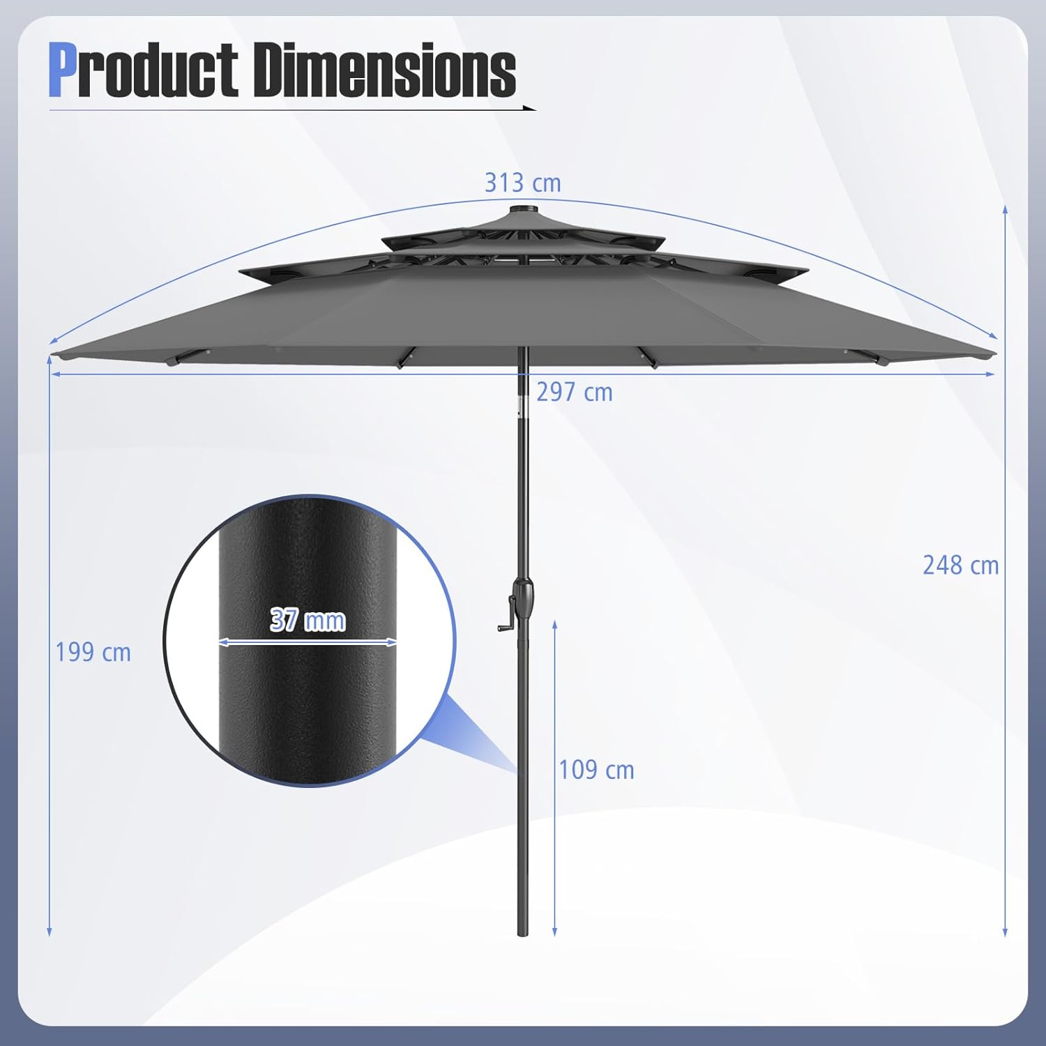 | Libellé | Parasol de jardin exterieur avec 32 lumières led, 3m parasol balcon inclinable avec toit à 3 niveaux,gris |