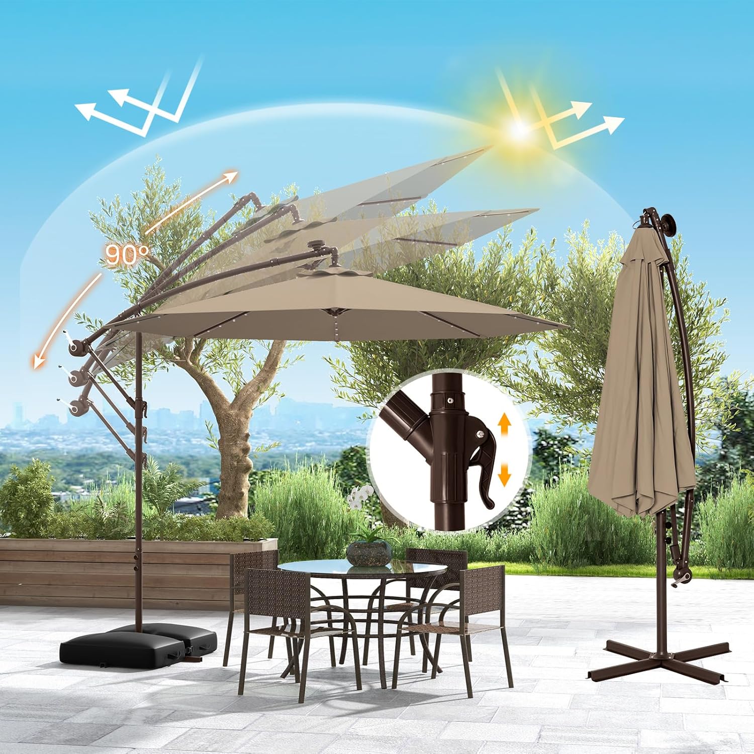 - 𝐀𝐧𝐠𝐥𝐞 𝐈𝐧𝐜𝐥𝐢𝐧𝐚𝐛𝐥𝐞 & 𝐌𝐚𝐧𝐢𝐯𝐞𝐥𝐥𝐞 𝐈𝐧𝐭é𝐠𝐫é𝐞 𝐂𝐨𝐧𝐯𝐢𝐯𝐢𝐚𝐥𝐞 : L’angle du parasol déporté peut être facilement réglé pour bloquer les rayons ultraviolets sous différents angles. De plus, le parasol de jardin est livré avec une manivelle intégrée conviviale pour une manipulation facile.