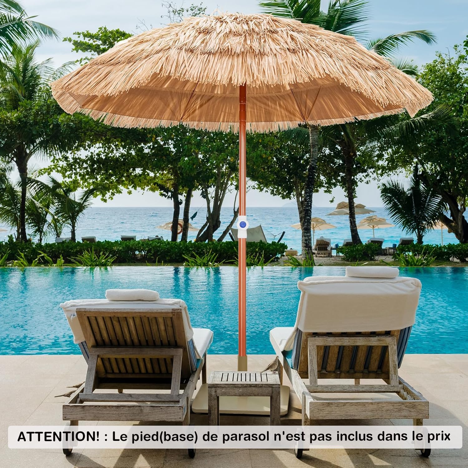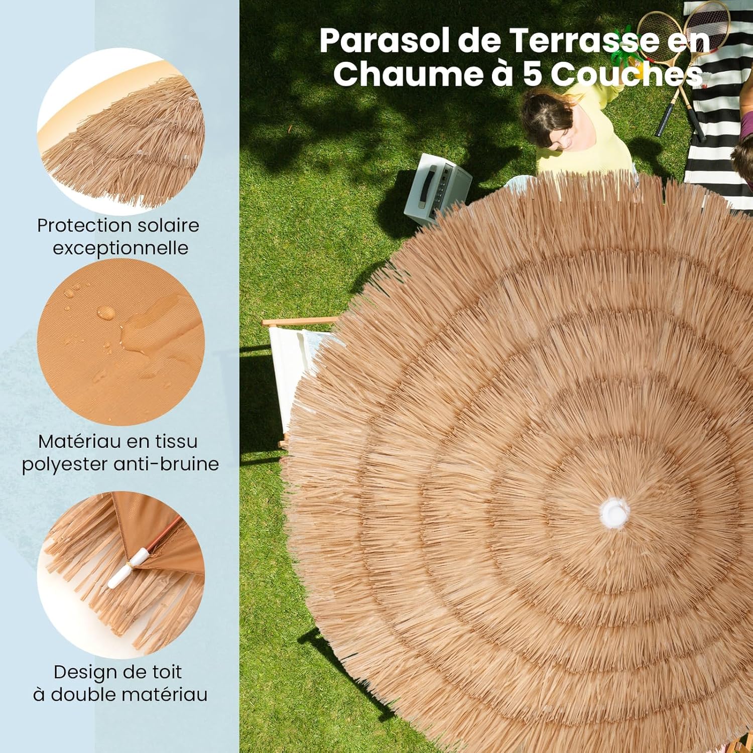 - Profitez de l'ombre : Fabriqué en chaume PP résistant aux intempéries et en tissu polyester imperméable, notre parasol de plage en chaume de première qualité offre une excellente ombre et protège votre peau des rayons du soleil. La conception en 5 couches de chaume garantit une excellente durabilité et une résistance à la décoloration.