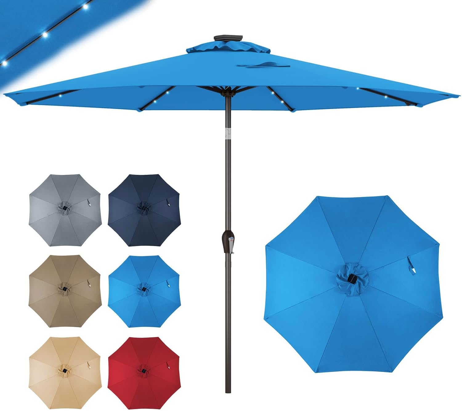 | Libellé | Parasol de jardin exterieur inclinable 8 baleines lumineux solaire 24 led manivelle,base non incluse bleu |