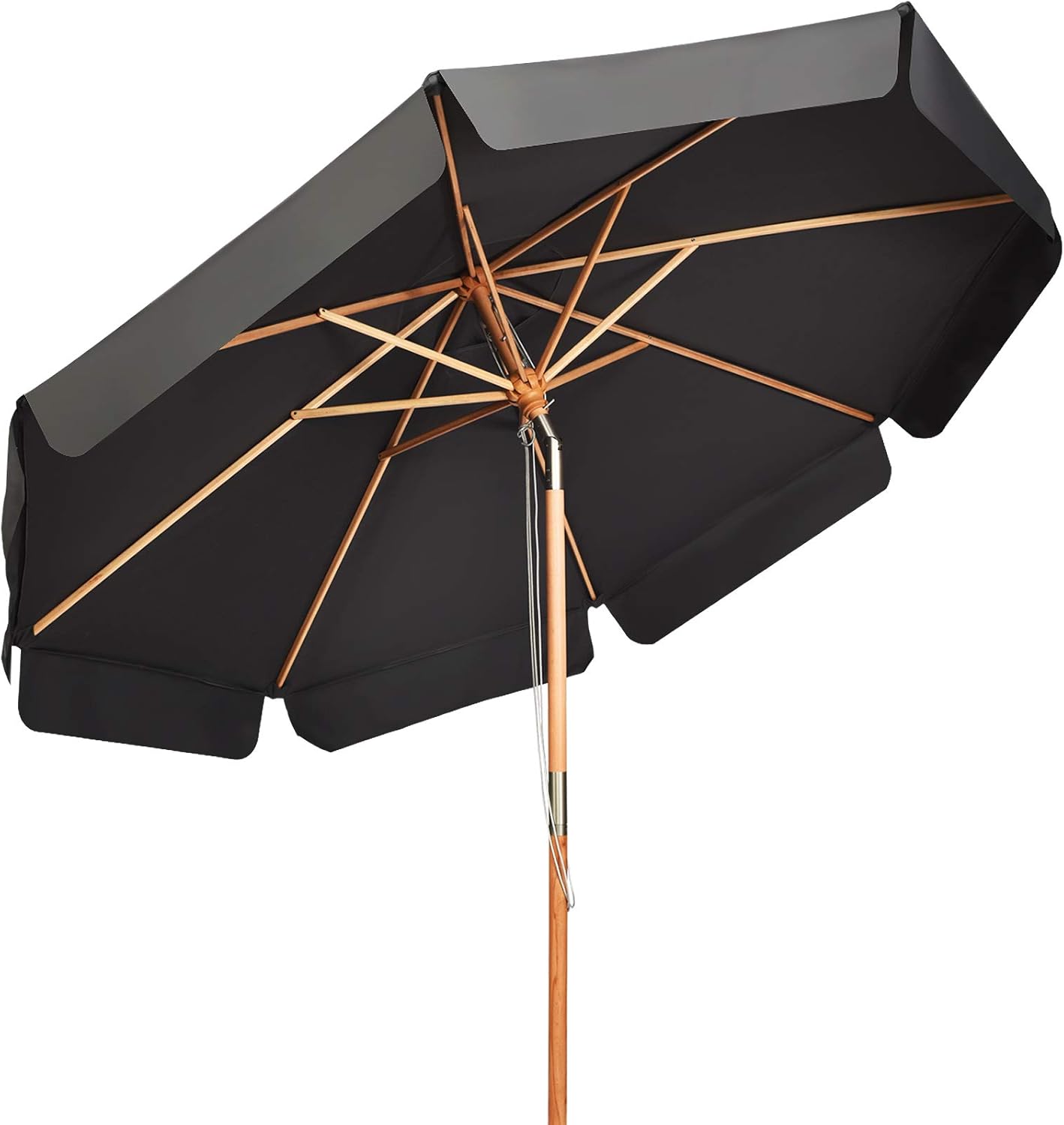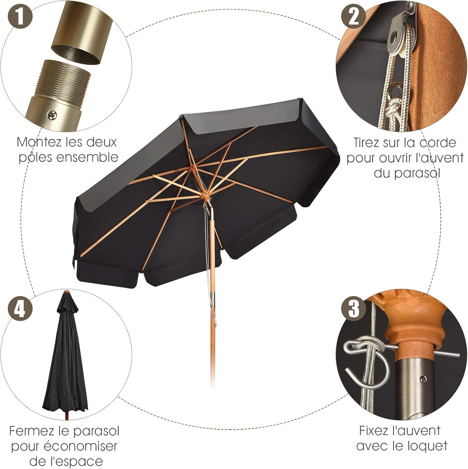 - 𝐑é𝐬𝐢𝐬𝐭𝐚𝐧𝐜𝐞 𝐚𝐮𝐱 𝐢𝐧𝐭𝐞𝐦𝐩é𝐫𝐢𝐞𝐬 : Le poteau du parasol de balcon est en bois de hêtre épais sélectionné. Les caractéristiques du bois de hêtre sont compactes et non déformées. Avec le poteau du parasol en hêtre de 44 cm de diamètre, il n'est pas facile à casser même par temps extrême et a une longue durée de vie.