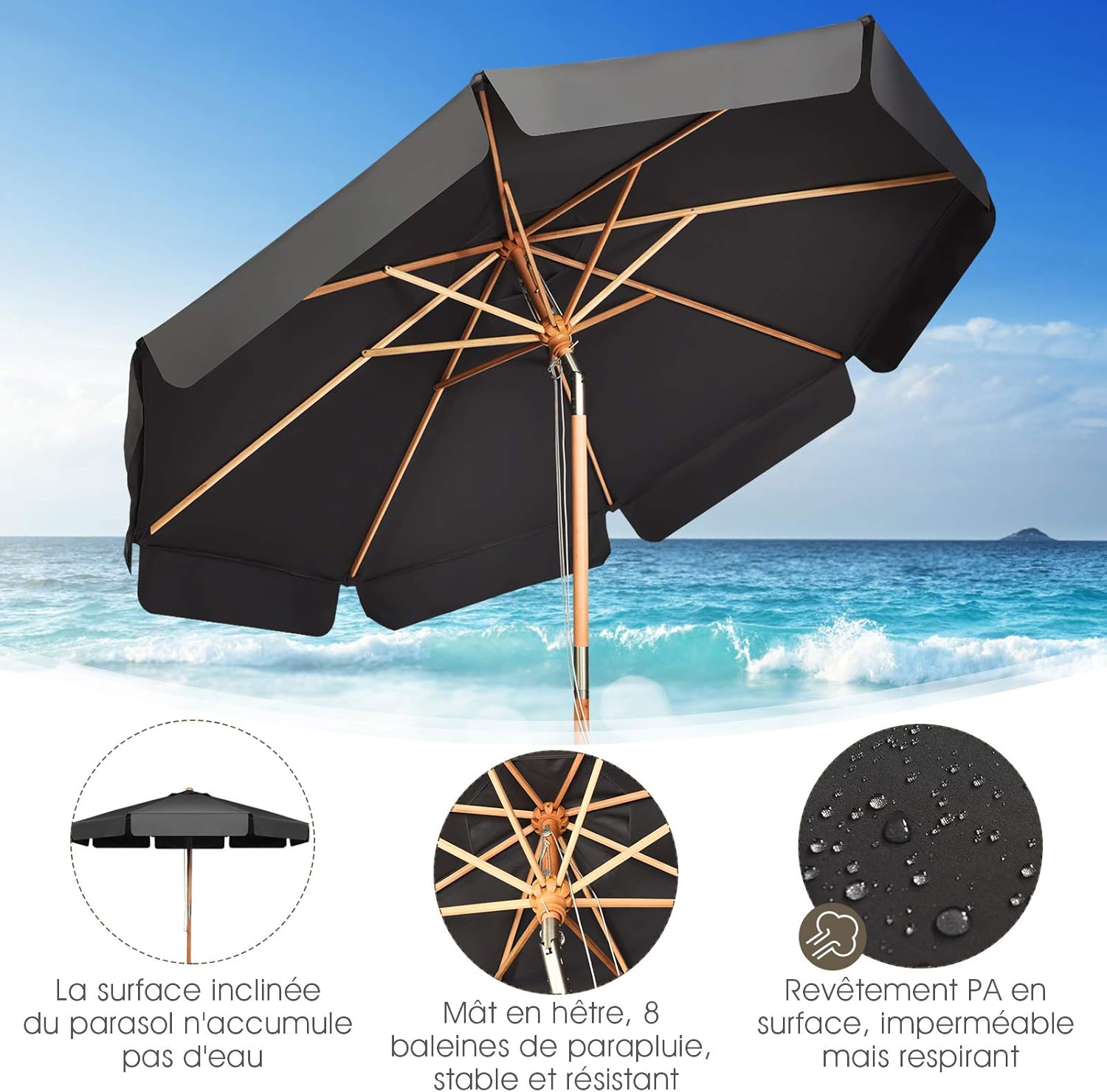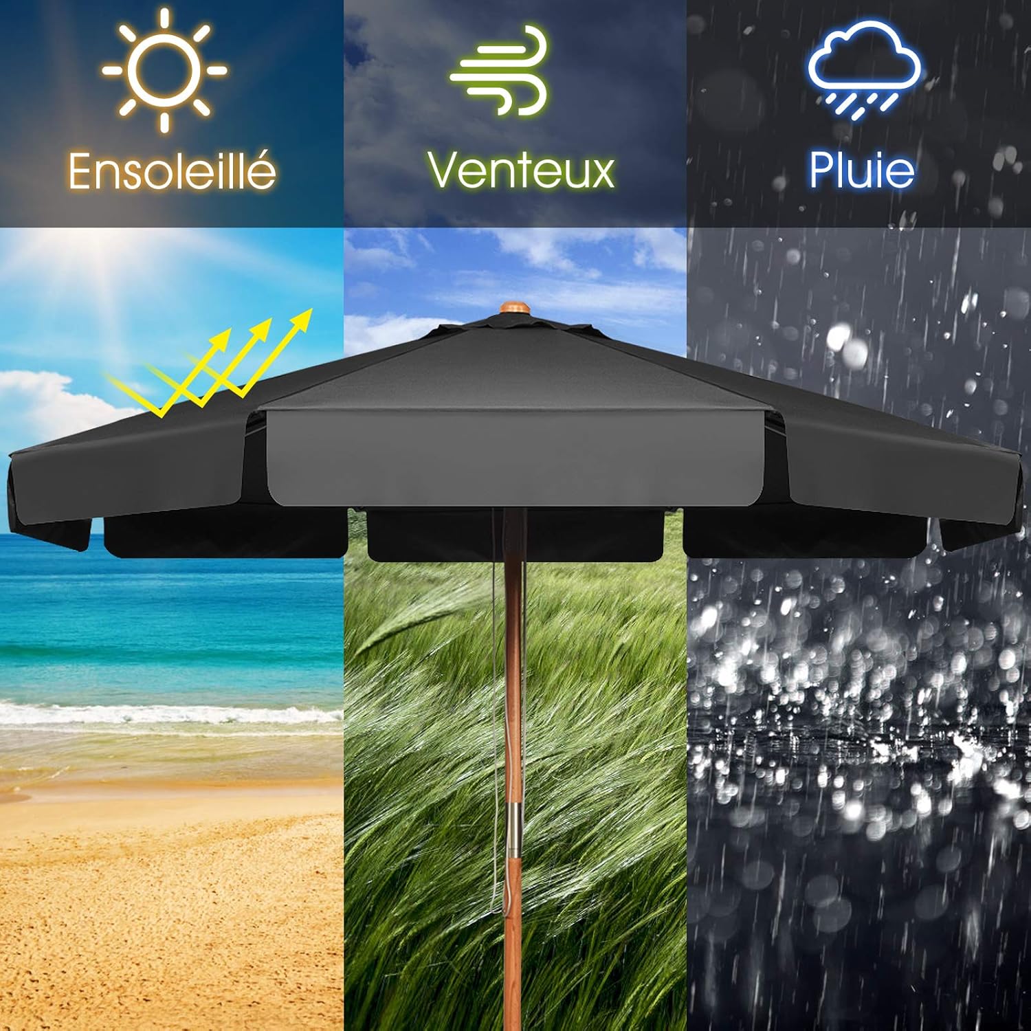 | Libellé | Parasol de jardin exterieur inclinable avec 8 baleines bois tissu en polyester imperméable anti uv,gris |