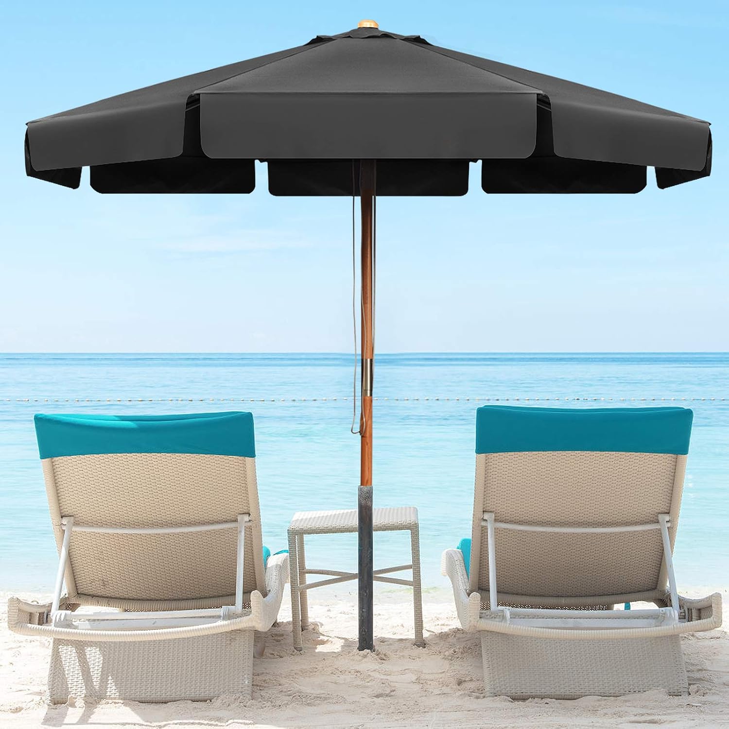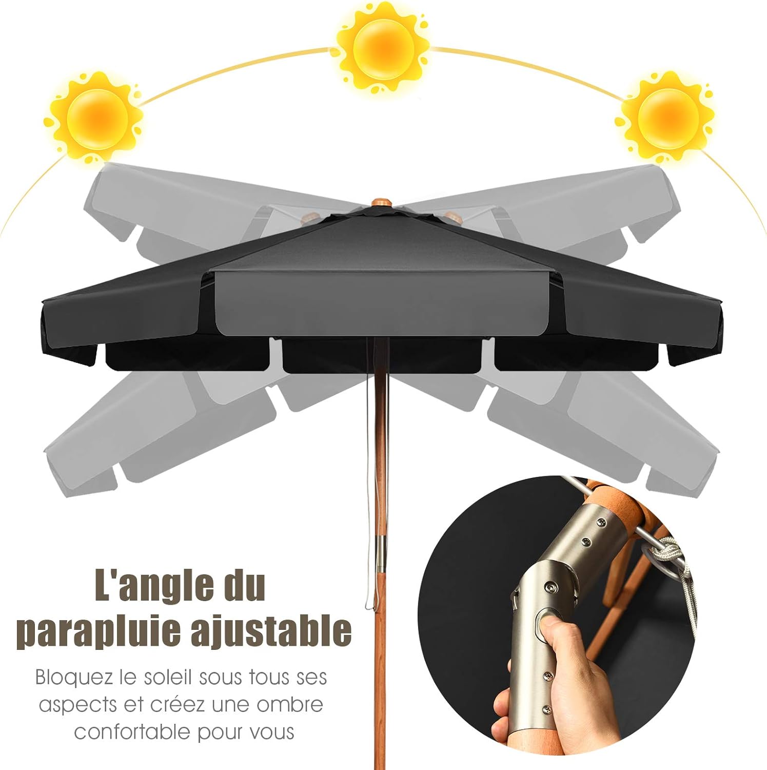 Parasol de jardin exterieur inclinable avec 8 baleines bois tissu en polyester imperméable anti uv,gris