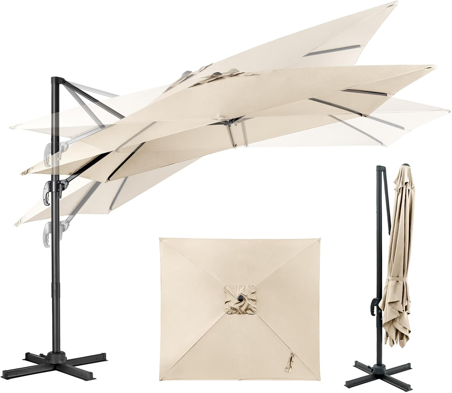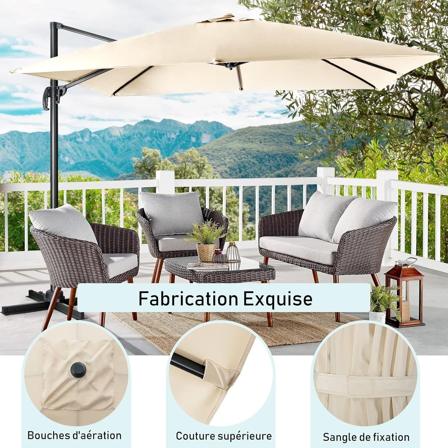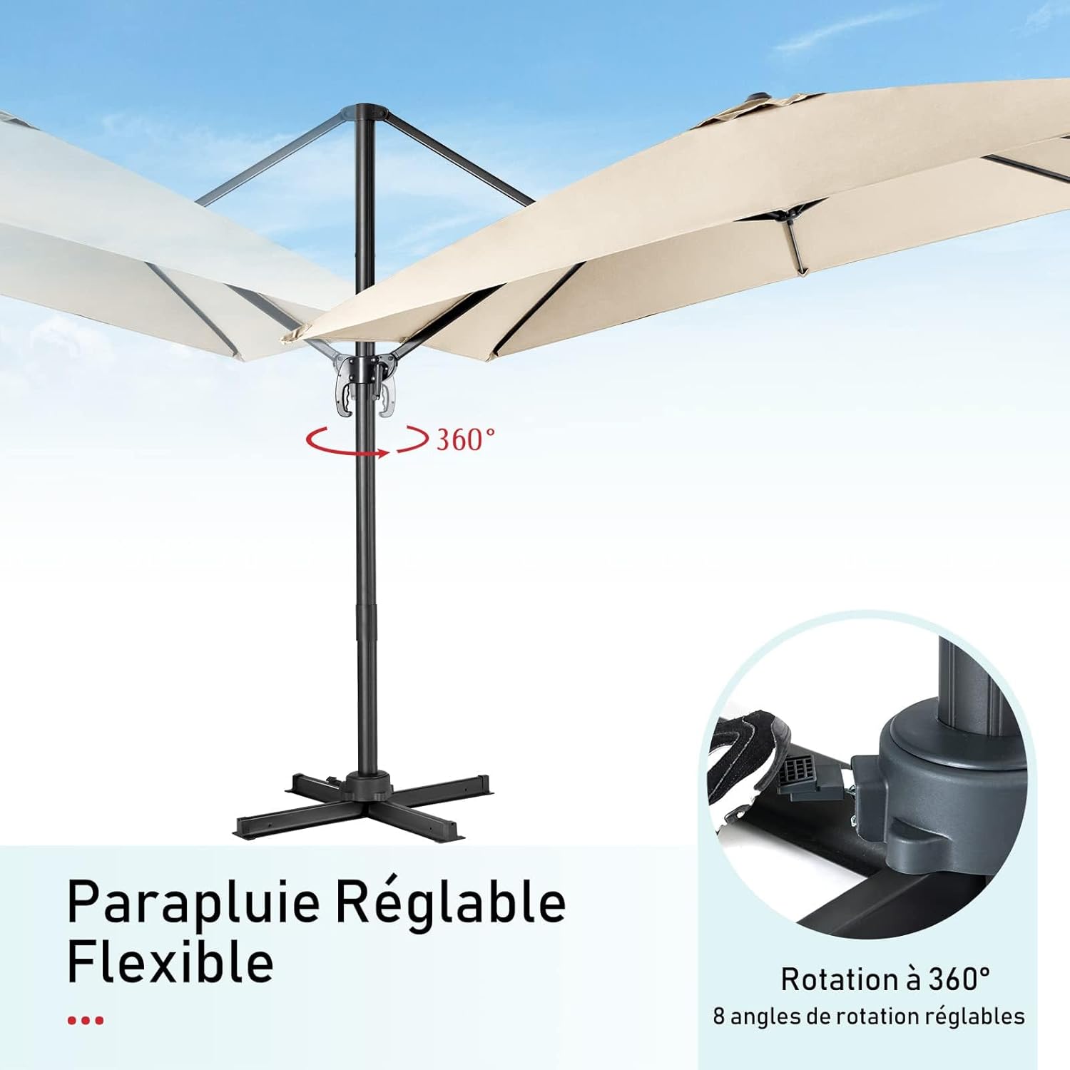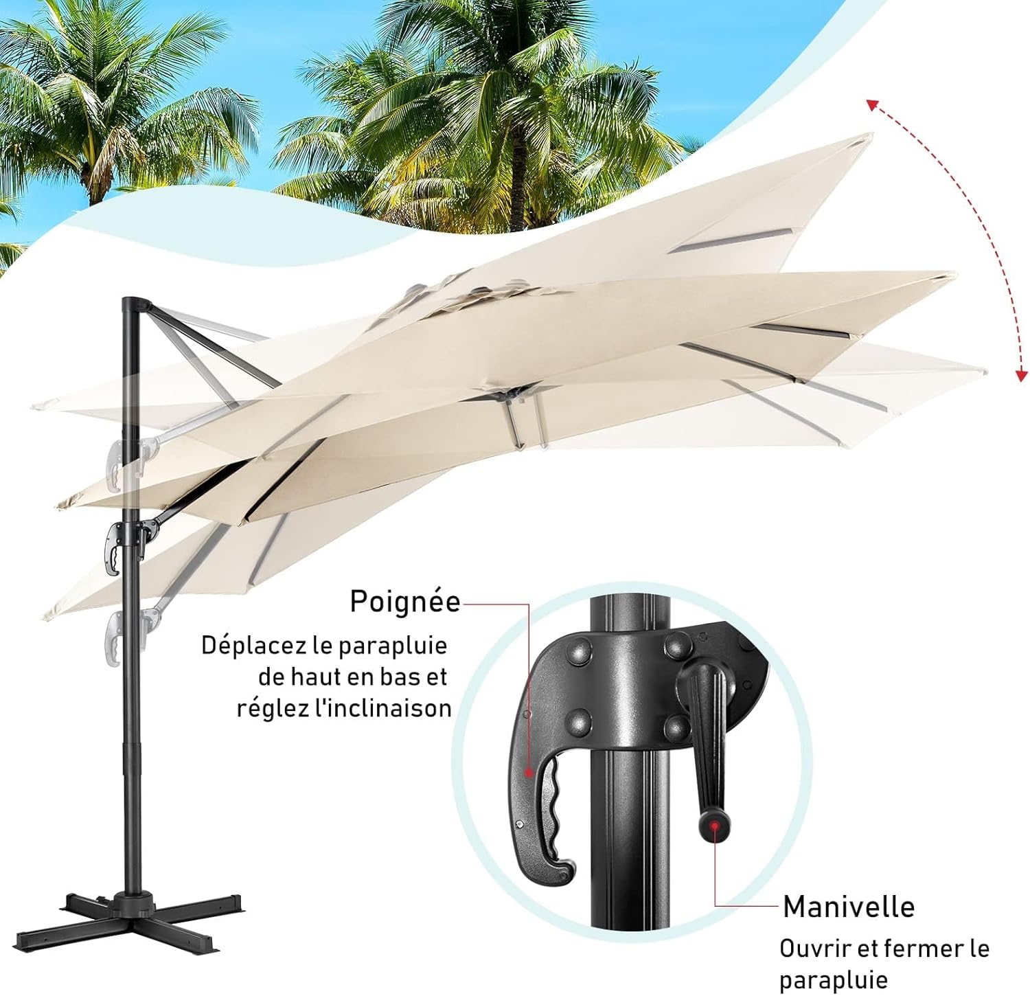 | Libellé | Parasol de jardin exterieur, parasol déporté avec manivelle, 8 baleines à double couche, rotation beige |