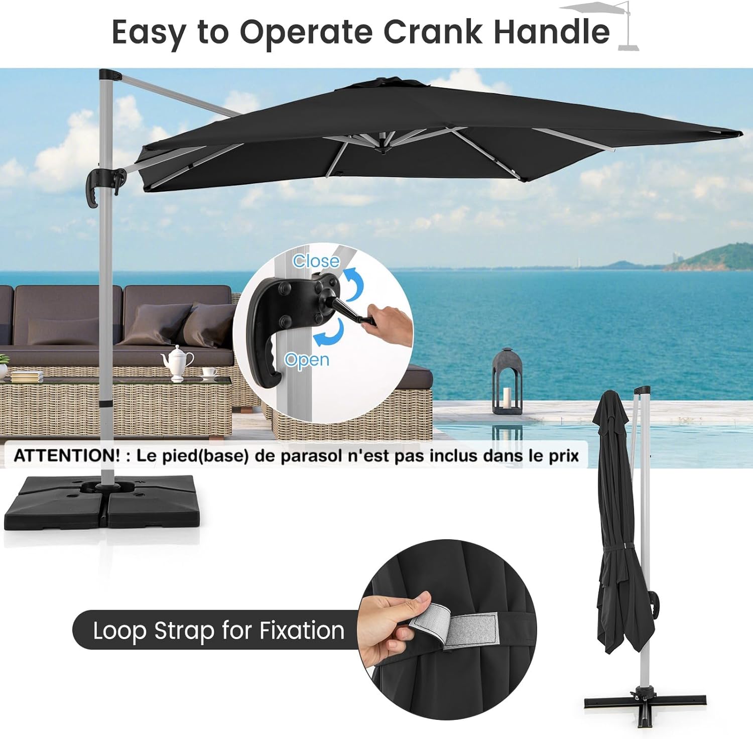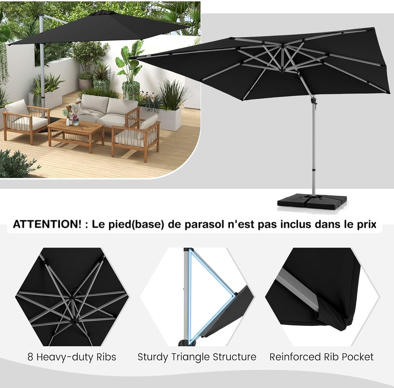 | Libellé | Parasol de jardin exterieur, parasol déporté avec poteau en aluminium, upf50+, parasol inclinable, noir |