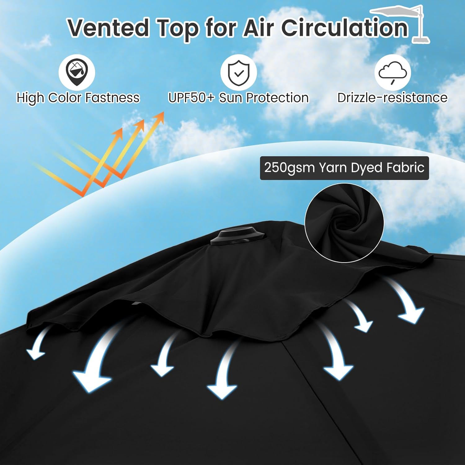 Parasol de jardin exterieur, parasol déporté avec poteau en aluminium, upf50+, parasol inclinable, noir