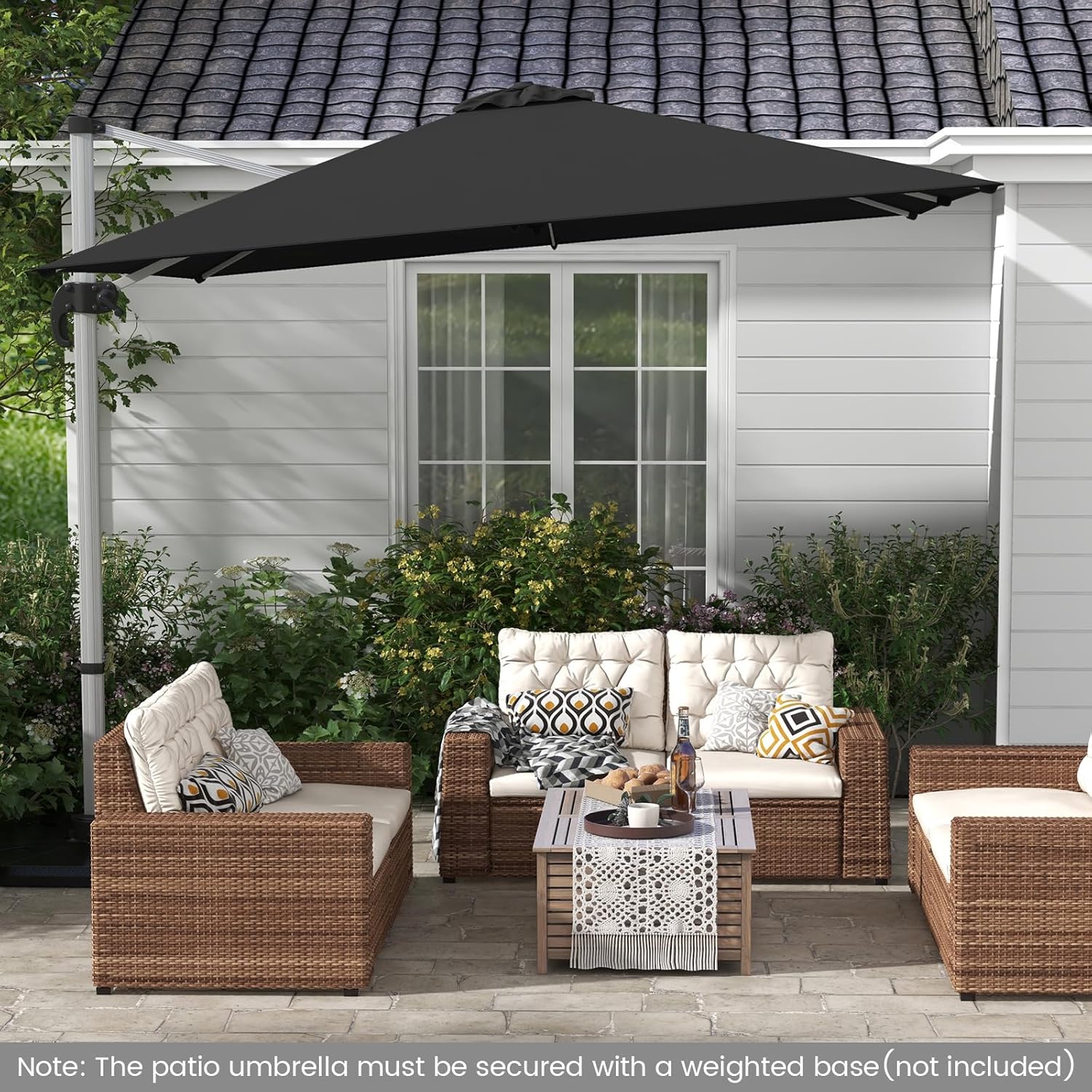 - Stabilité Excellente : Le parasol carré est doté d'un mât en aluminium résistant à la rouille, offrant une robustesse inégalée. Les 8 baleines robustes et la structure triangulaire confèrent une stabilité exceptionnelle. La base croisée incluse (nécessitant une base lestée, non fournie) renforce la résistance au vent.